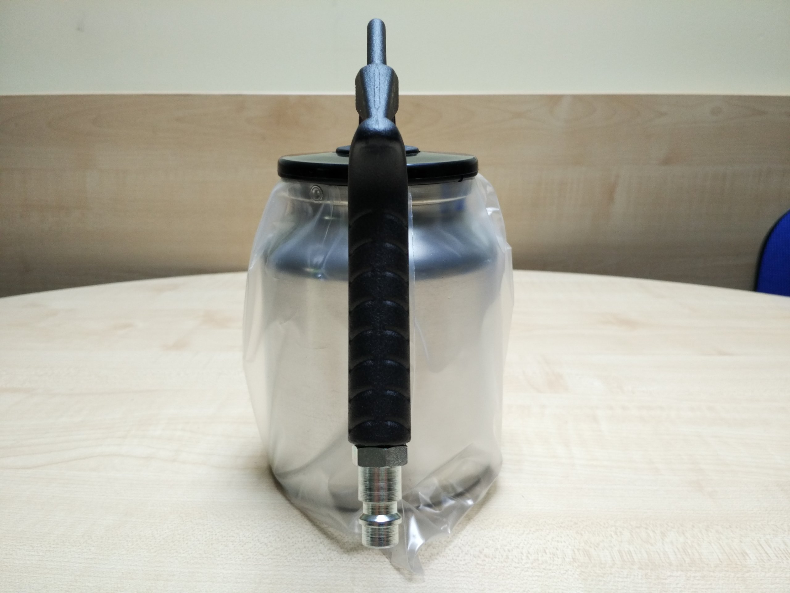 Пистолет оснащен алюминиевым баком, что облегчает перемещение пистолета вокруг пескоструйных объектов.