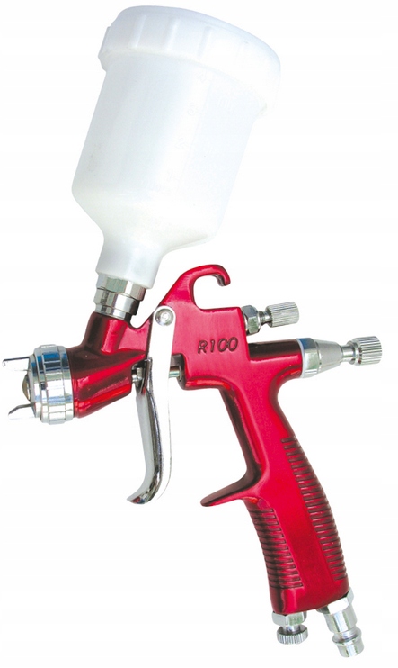 - ad-r100 mini lvlp -это профессиональный пистолет с низким давлением. Это меньшая версия Ad-R500. Усовершенствованное строительство пистолета и форсунки. Пистолет оснащен верхним, гравитационным, пластиковым баком с емкостью 120 мл.