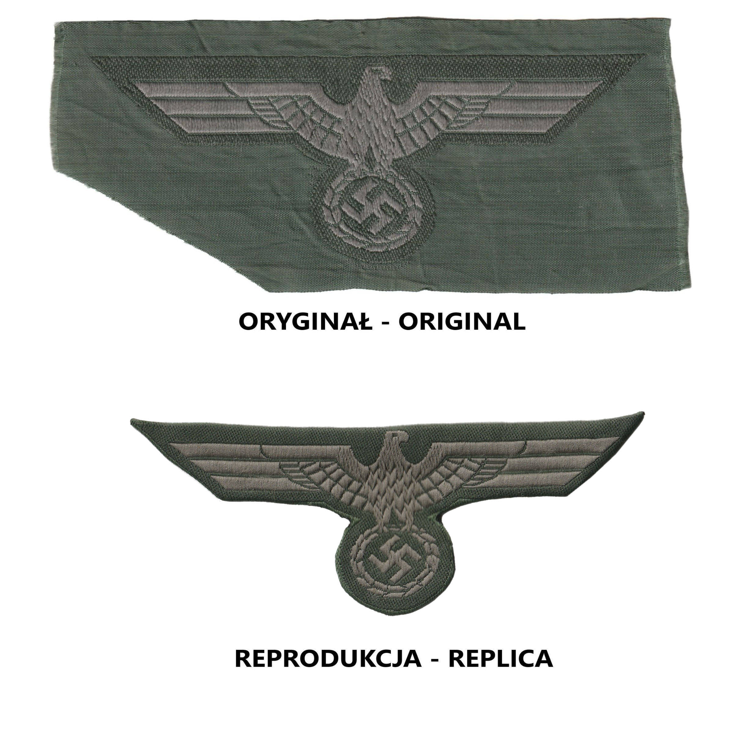 Реплика орла на форменной рубахе, выполненная в технике плетения BeVo. Патч из хлопка. Адлер уже сложен и готов к пришиванию к толстовке. На фото №2 представлена реплика Адлера в сравнении с оригиналом.