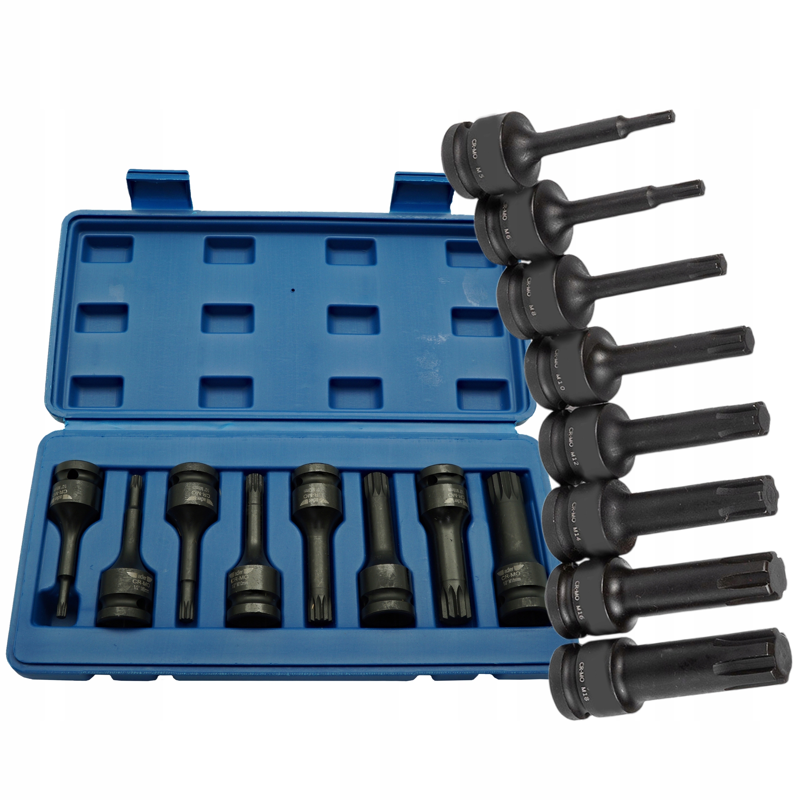 ADLER ZESTAW NASADKI UDAROWE KLUCZE TRZPIENIOWE SPLINE M5-M18 1/2'' 8 SZT