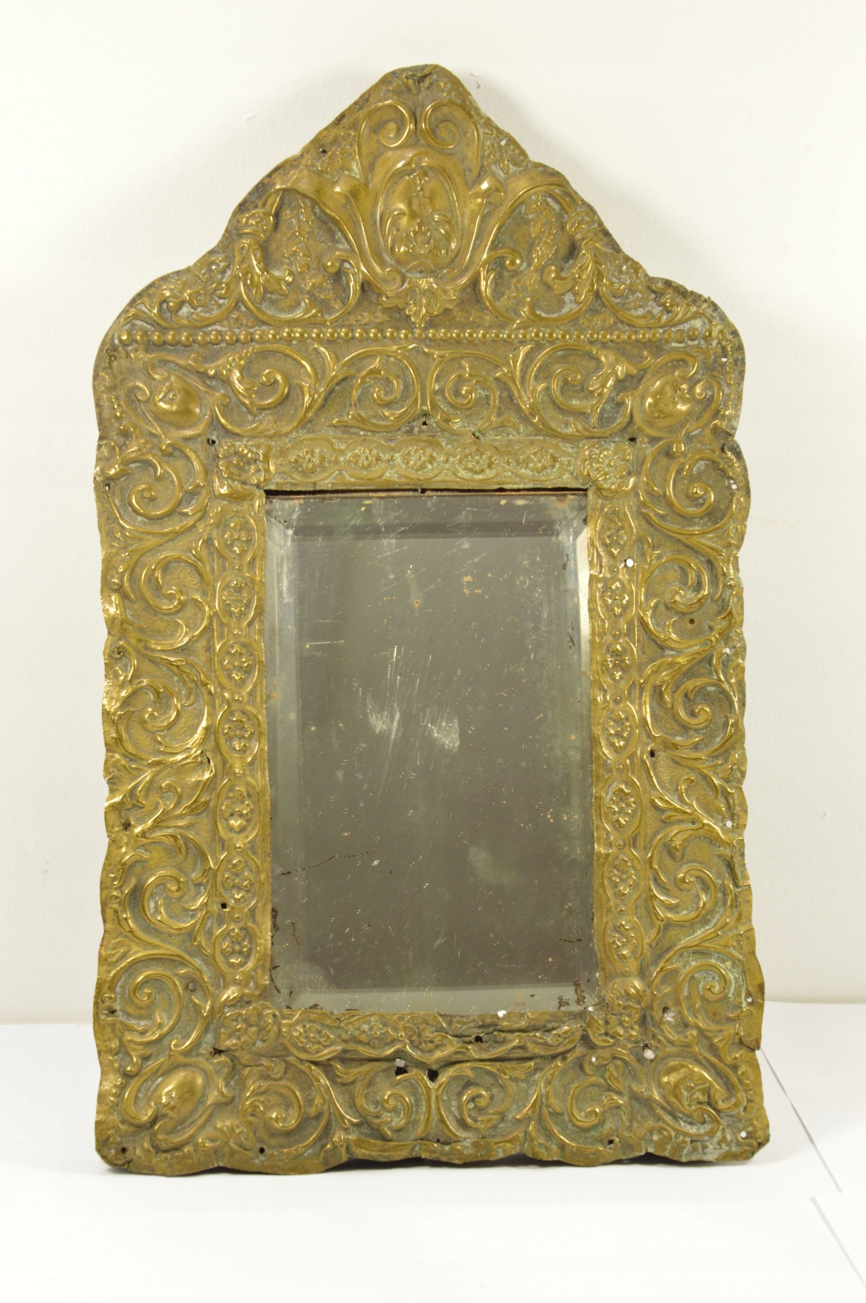 ХОРОШЕЕ ДОВОЕННОЕ ПОДВЕСНОЕ ЛАТУННОЕ ЗЕРКАЛО, ПОСМОТРИ!