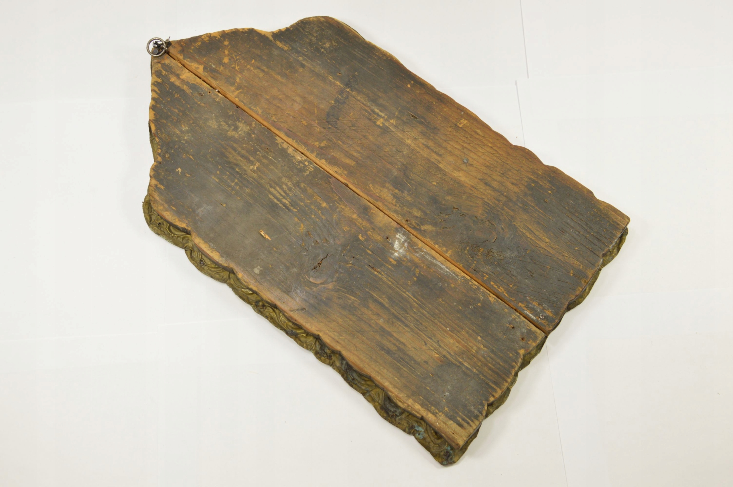 Оригинальное довоенное подвесное зеркало. Изготовлен из декорированного латунного листа, облицованного досками. Стекло фацетное, старое, с видимыми пятнами и царапинами. Выглядит очень красиво, редко.