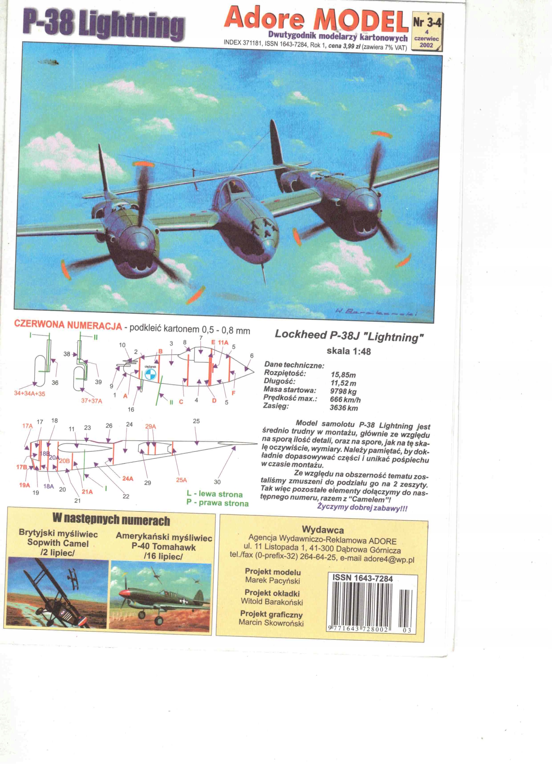 Обожаю МОДЕЛЬ 3-4 P-38 Молния 1:48