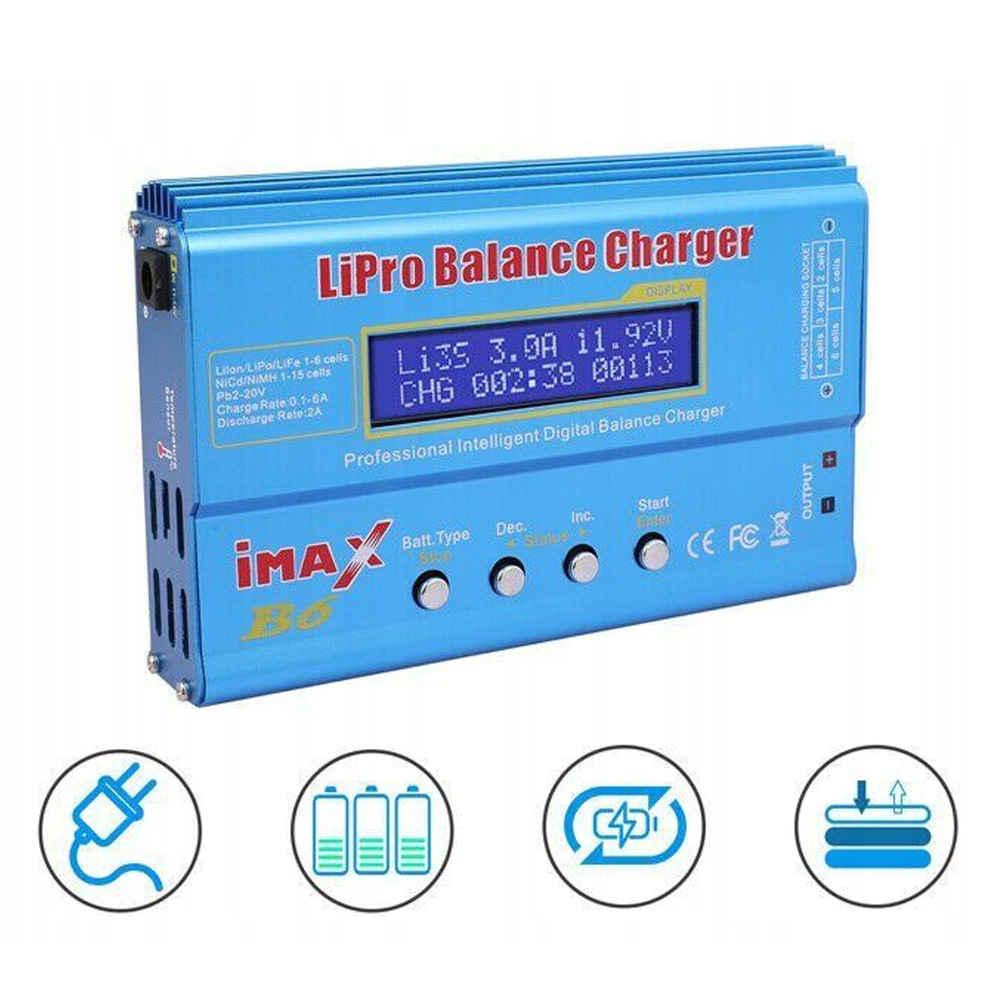 ШИРОКАЯ СОВМЕСТИМОСТЬ: Как любитель радиоуправлений, у вас дома обычно есть разные батареи, вы их все еще заряжаете? с разными типами зарядных устройств? Выберите зарядное устройство B6, совместимое со всеми типами аккумуляторов. Оснащен высокопроизводительным микропроцессором, который может заряжать и разряжать различные батареи, такие как NiMH/NiCD батареи 1,2–18 В (1–15 ячеек), LiPo/Li-ion батареи 3,7–22,2 В (1–6 ячеек). Аккумуляторы LiFePO4 3,2–19,2 В (1–6 ячеек) и аккумуляторы SLA 2–20 В.