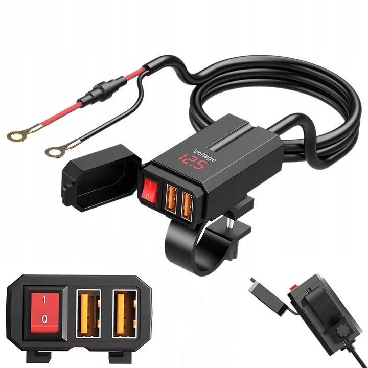 Зарядний пристрій для мотоциклів 2x USB QC 3.0 SAE Вольтметр