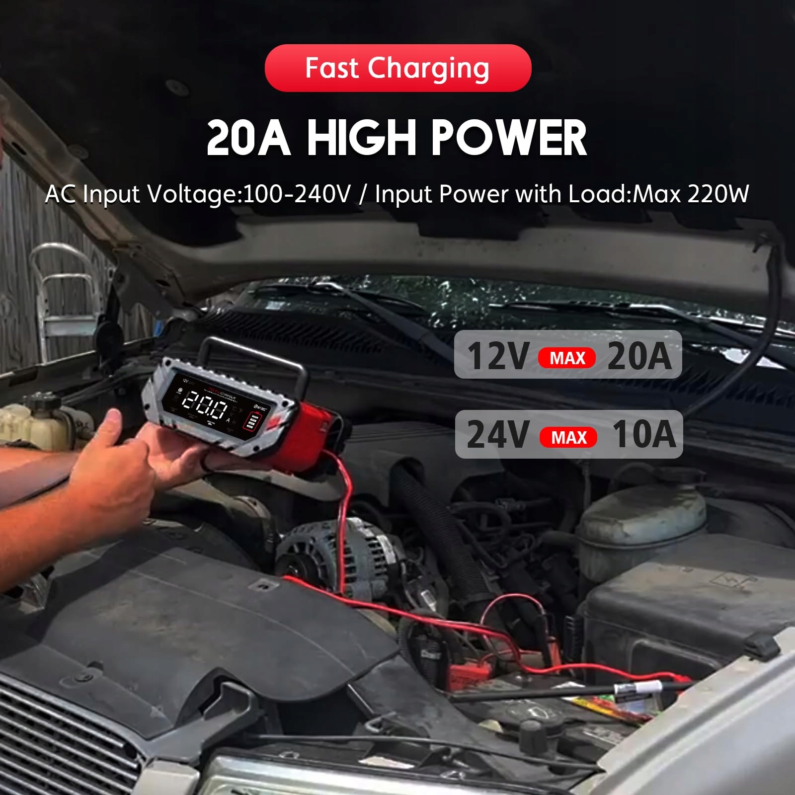 ŁADOWARKA prostownik do akumulatora EFB ŻEL AGM 12V 24V 20A LCD