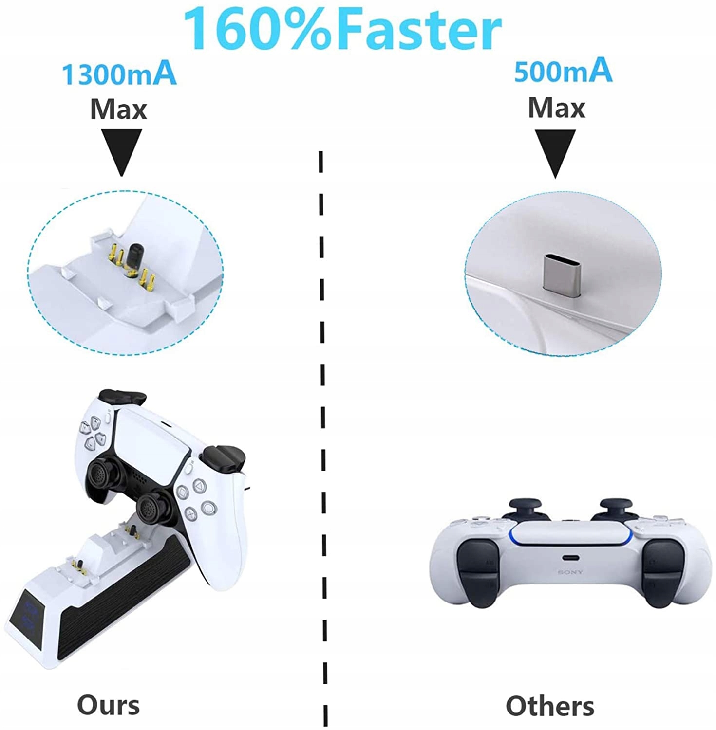 - Зарядник PS5. Поддерживает 2 PS5 контроллеров для зарядки одновременно. И его также можно использовать в качестве контроллера