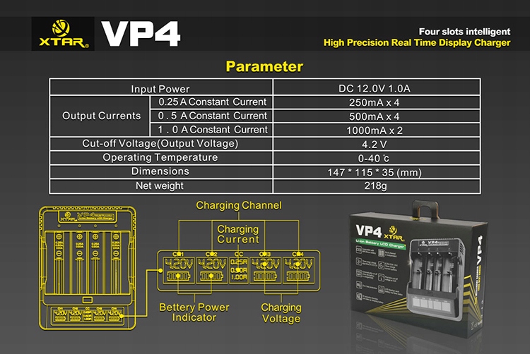 ŁADOWARKA XTAR VP4 Li-ion 14500 16340 18650 26650