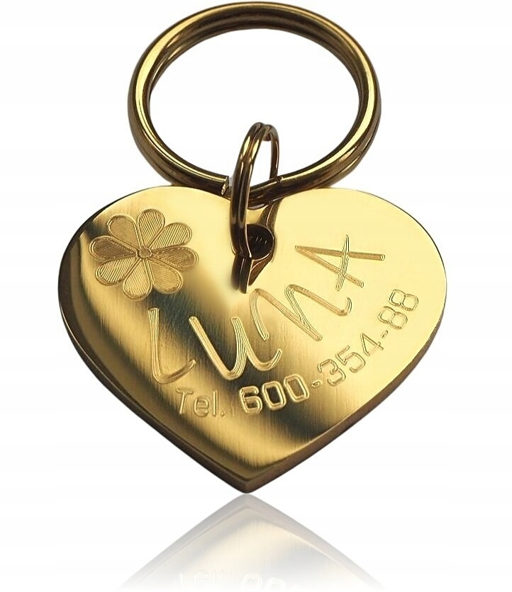 Идентификатор/адресная бирка для собаки/кошки с ДВУХСТОРОННЕЙ гравировкой текста/хирургическая сталь/серебро/золото/СЕРДЦЕ.