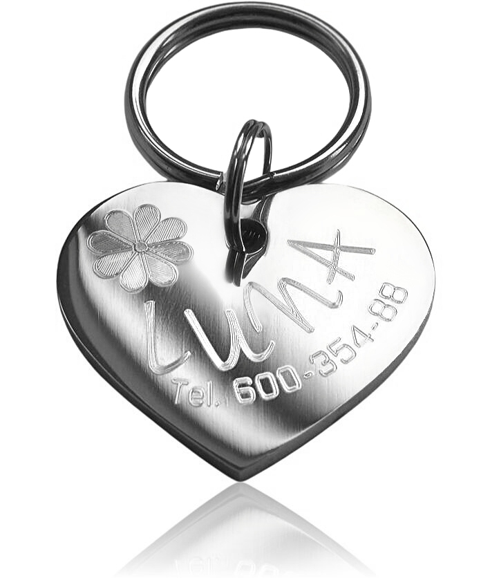 Идентификатор/адресная бирка для собаки/кошки с ДВУХСТОРОННЕЙ гравировкой текста/хирургическая сталь/серебро/золото/СЕРДЦЕ.