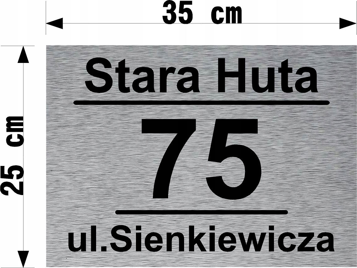 Адресная табличка с номером объекта недвижимости и названием улицы, размеры: 35см х 25см. Плата изготовлена на очень прочной основе (композитная плата толщиной 3 мм, тип Di Bond). В этом материале внешние слои алюминия соединены с полиэтиленовым сердечником.