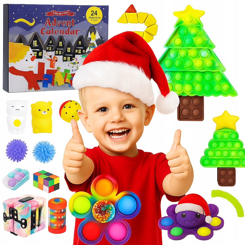 Календарь Адвента Pop It Fidget Toy Anti -Stress Crap Mikołaj Blind Box