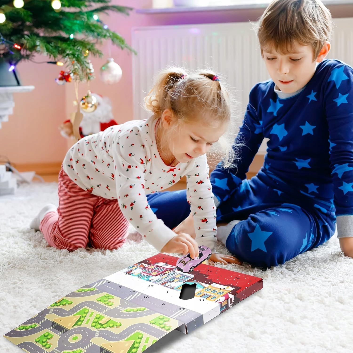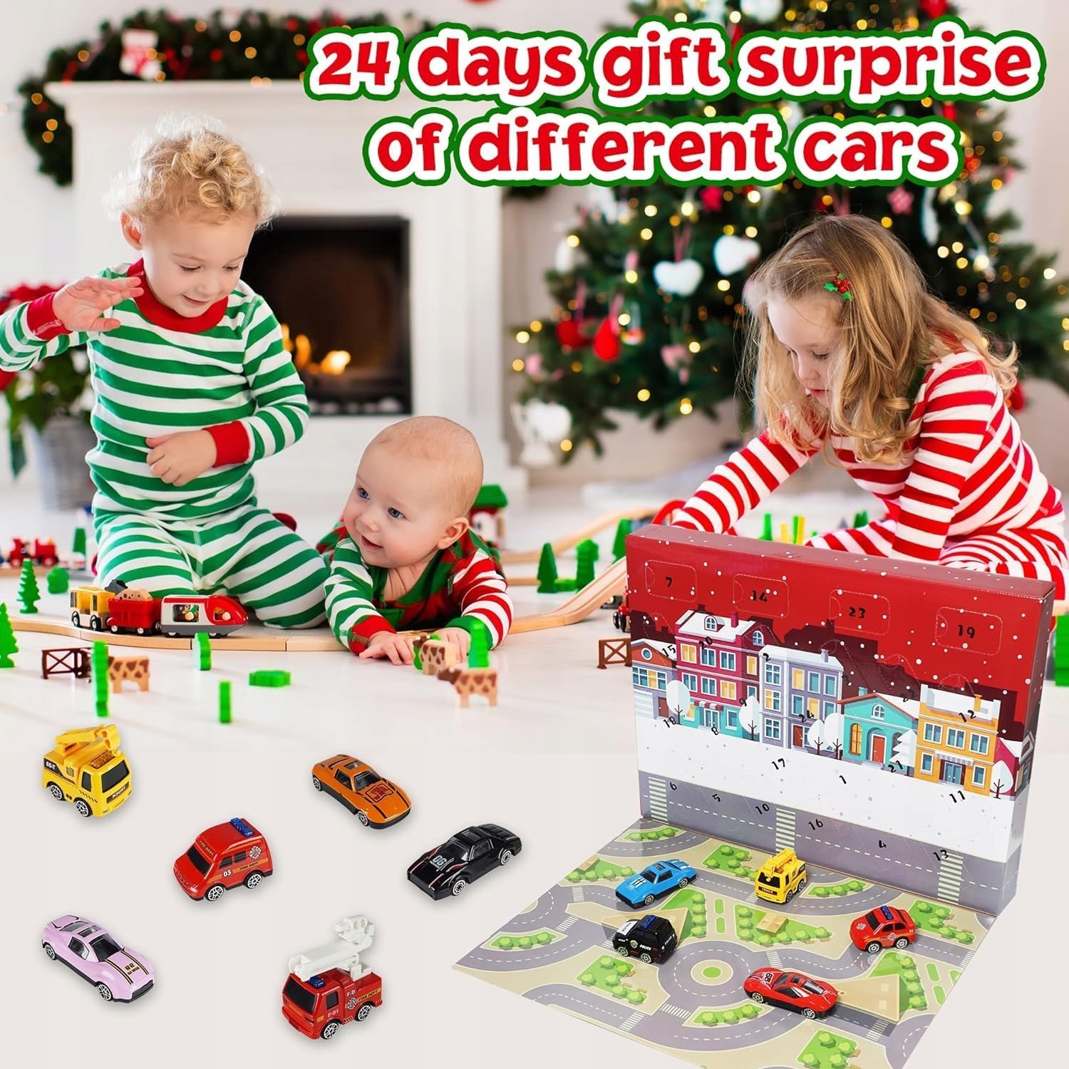 🎄🎄🎄Рождественский адвент-календарь: Автомобильная тема – 24 мини-машинки + ящик для хранения игрушек