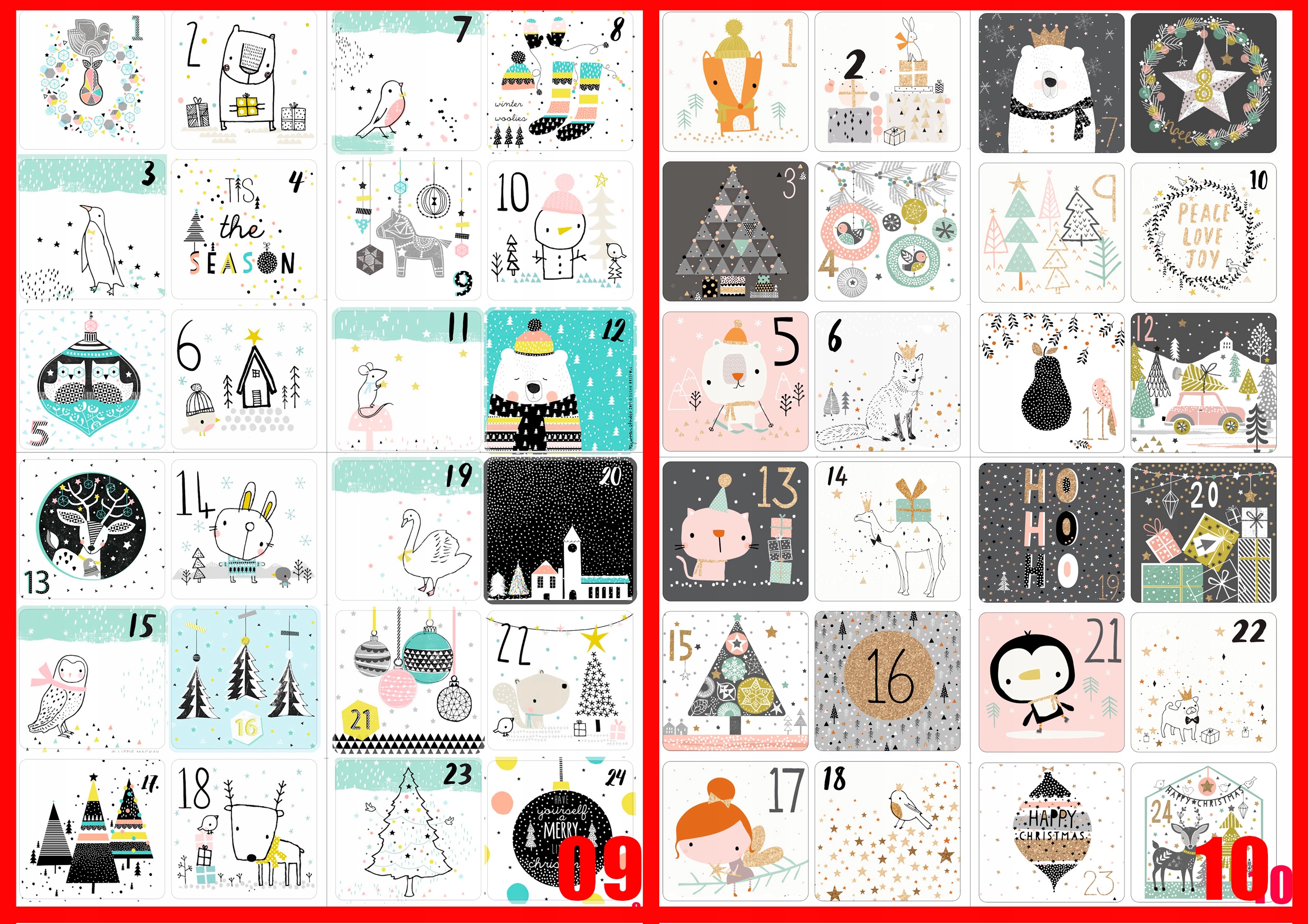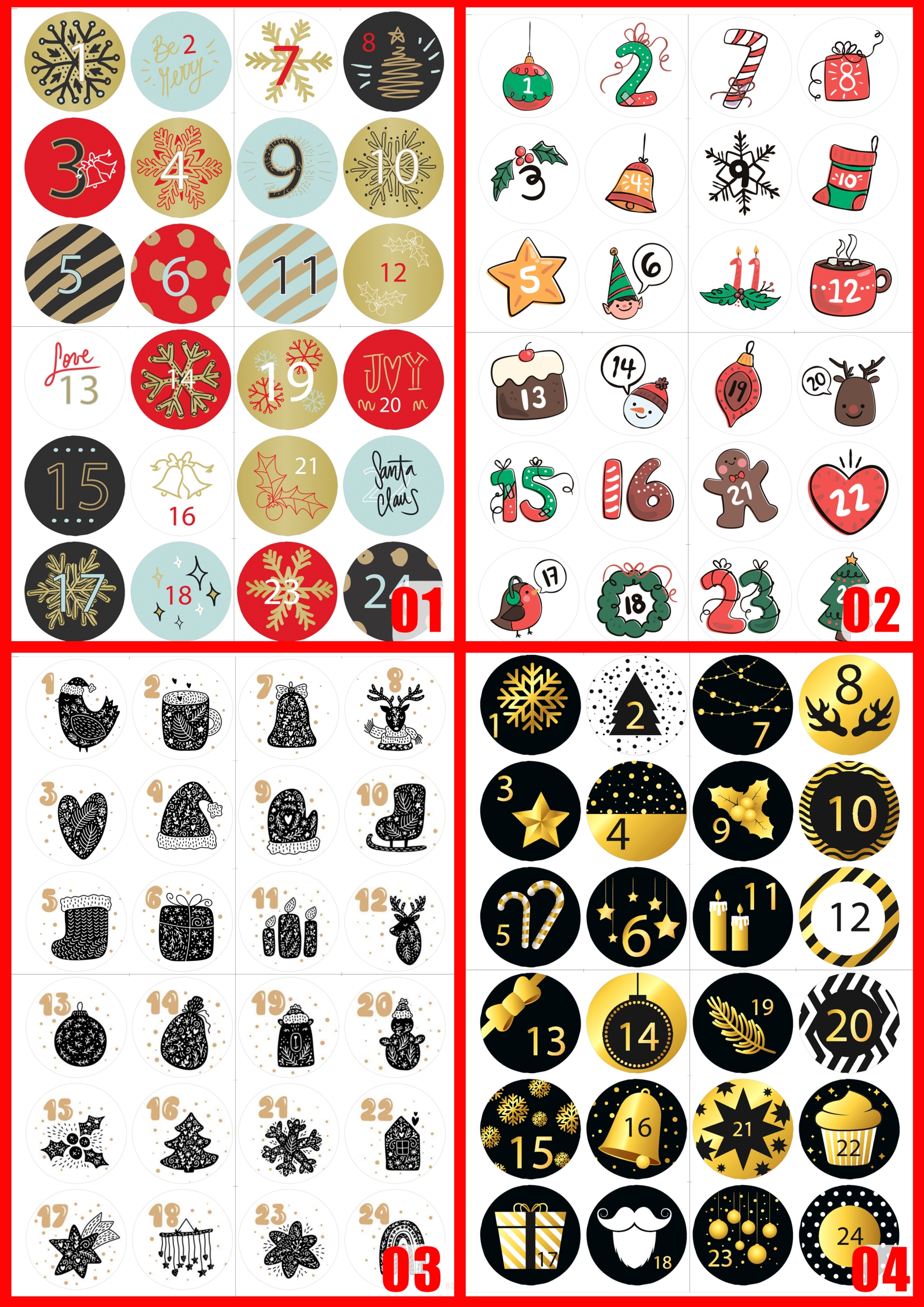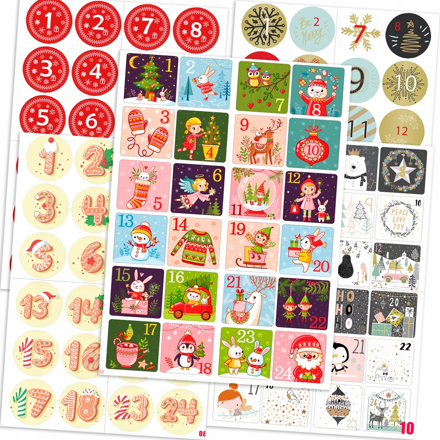 АДВЕНТ-КАЛЕНДАРЬ декор а4 24 РОЖДЕСТВЕНСКИЕ НАКЛЕЙКИ 4,5 см много дизайнов