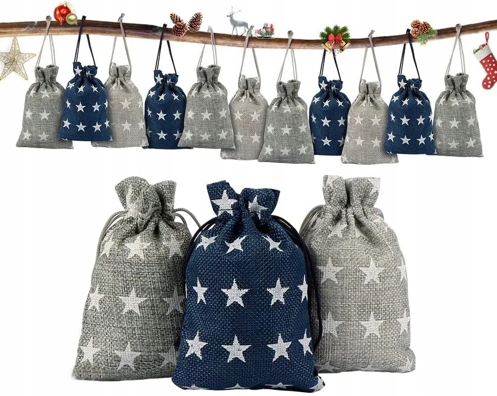 Подвесные адвентские мешочки — идеальный способ вместе отпраздновать этот особенный момент года. Где повесить этот оригинальный адвент-календарь, решать вам. Это может стать отличным украшением не только рождественской елки, но и камина. В комнате вашего ребенка вы можете повесить их где угодно с помощью веревки и зажимов. Этот комплект состоит из джутовых сумочек с тремя узорами и пронумерованных подвесок, поэтому он станет отличным дополнением в это особенное время года.