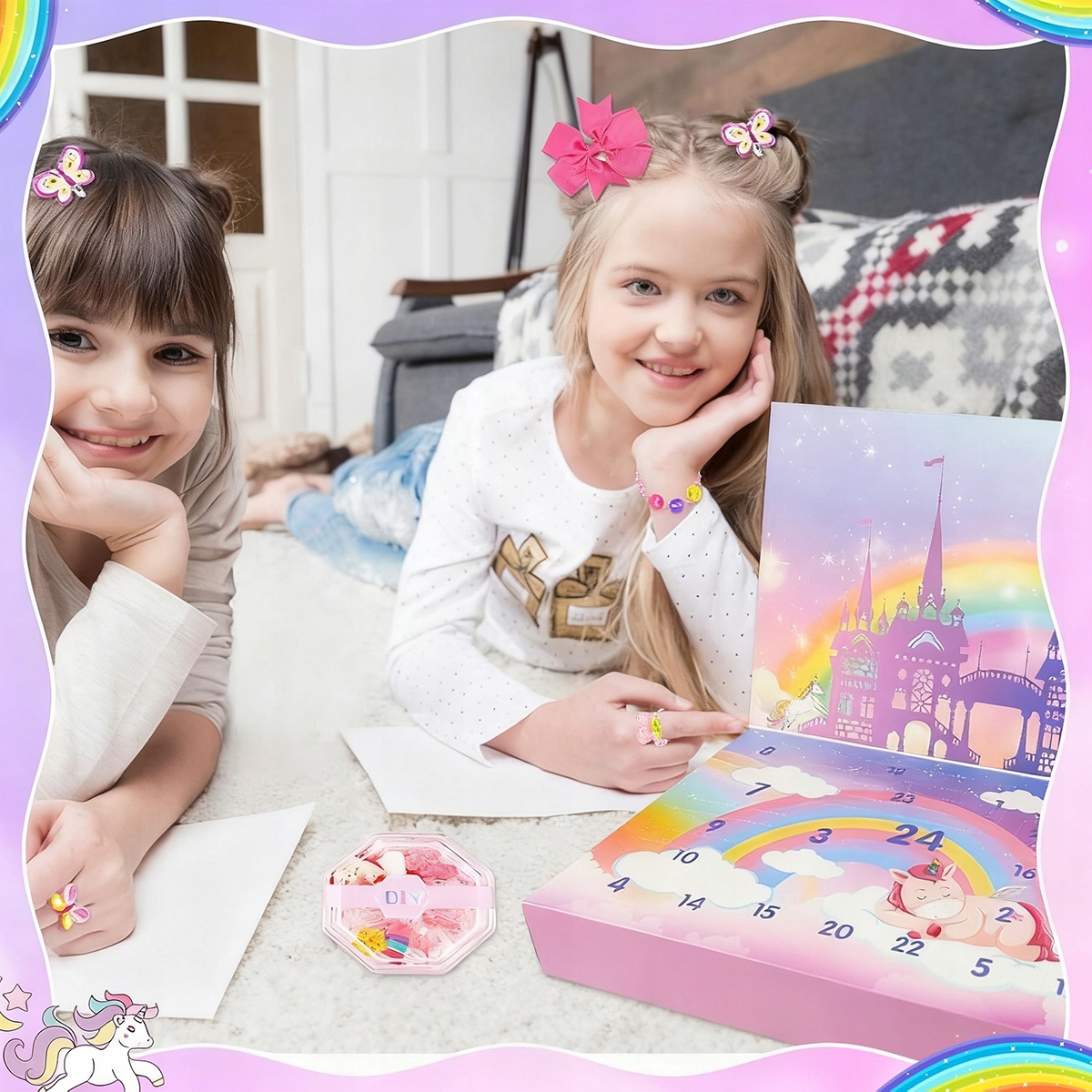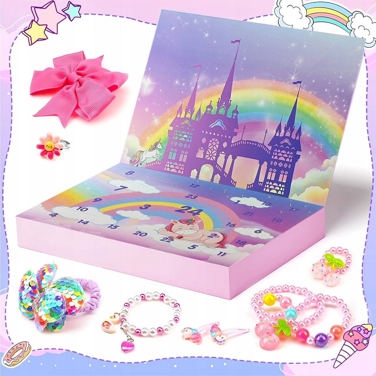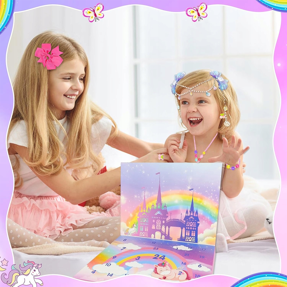 Адвент-календарь для девочек на 2025 год - календарь, отсчитывающий дни до Рождества с украшениями для волос, ожерельями и набором для самостоятельного изготовления - 24 начинки - украшения и игрушки для девочек от 3 до 12 лет