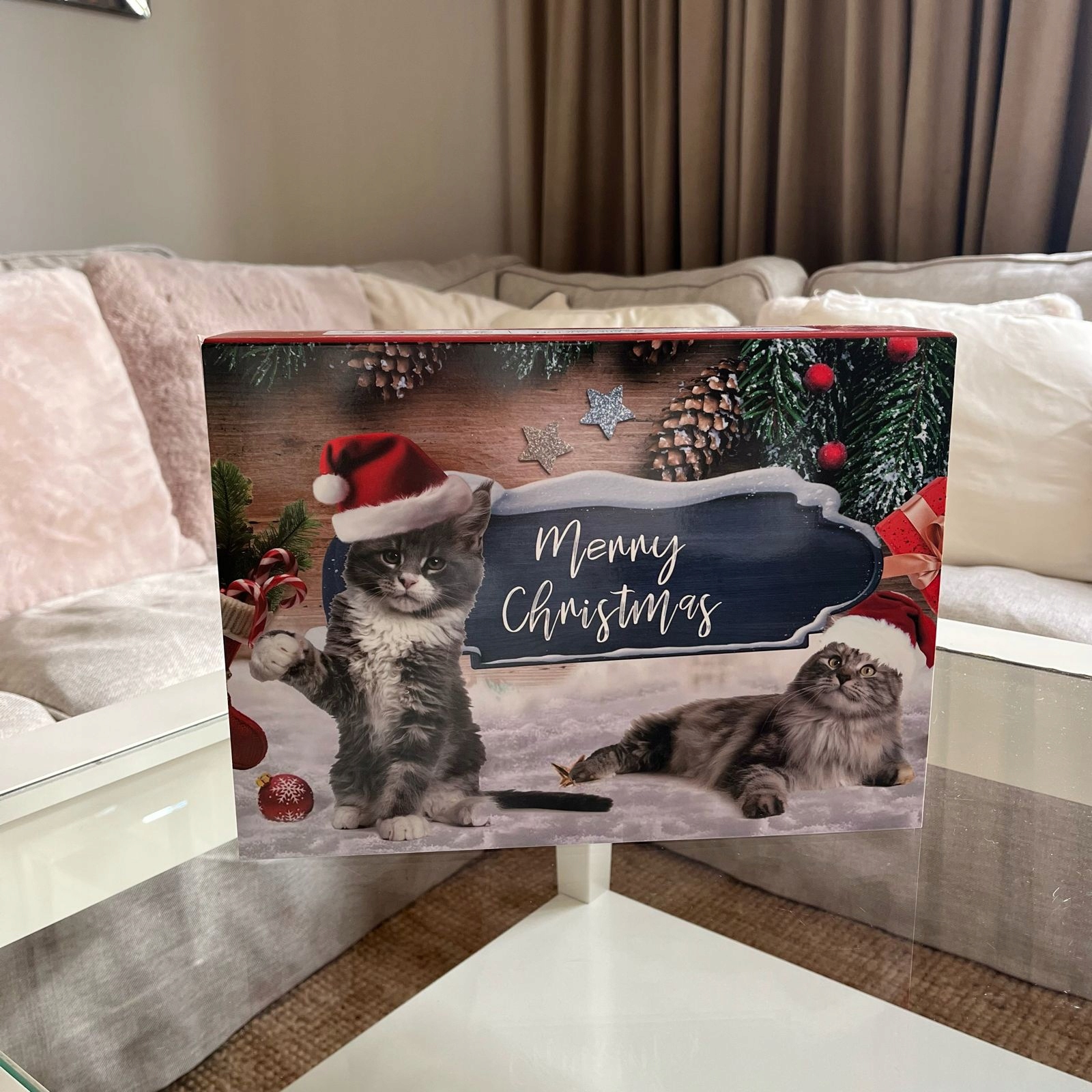 - Упаковка: декоративный картон с принтом котов в шапках Санты