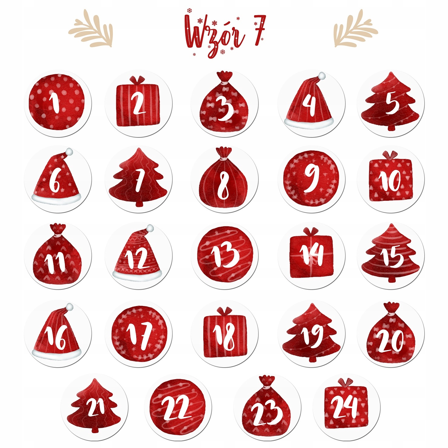 - 24 х Адвент-наклейки (в сообщении нам) , пожалуйста, предоставьте информацию о выбранном дизайне наклейки).