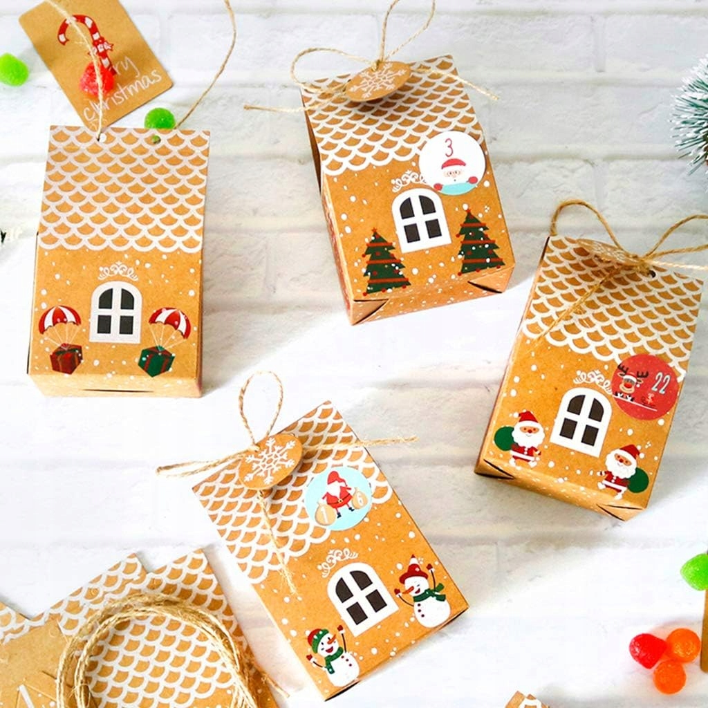 АДВЕНТ КАЛЕНДАР Різдвяні паперові будиночки Адвент подарункові коробки 24