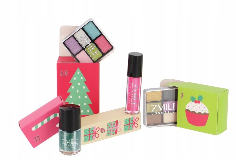 Адвентский косметический календарь-пазл «Oh What Fun» - содержит 24 различных косметических продукта. Содержит блеск для губ, румяна, тени для век, карандаши для глаз и губ, точилку, разделитель для ногтей, пилку, аппликаторы для теней, кисточку, лаки для ногтей, наклейки для ногтей и т. д.