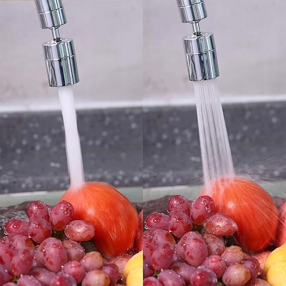 - [2 типа насадок, вращение на 360°]: Экономитель водопроводной воды имеет два типа струи воды: мягкую пузырьковую струю и мощную струю, которую можно вращать по мере необходимости. Контроллер распыления смесителя можно поворачивать на 360° и наклонять на 45°, чтобы легко покрыть всю кухонную раковину.