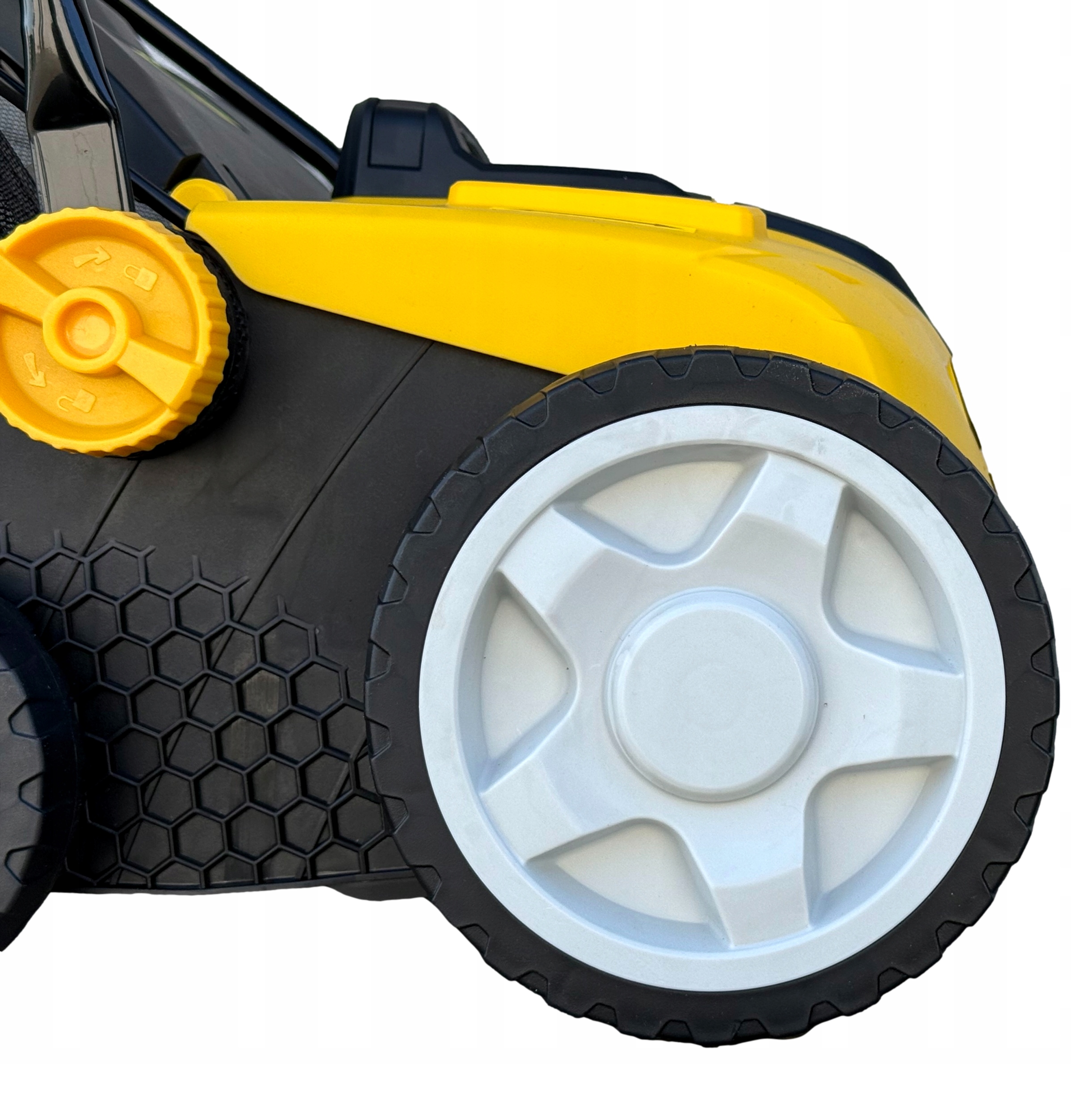 ✅ Большие колеса с протектором они облегчают работу на больших поверхностях и те, где есть очень густая трава.