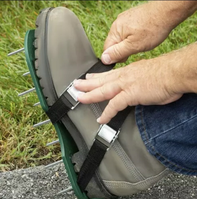 Чтобы улучшить состояние вашего газона, достаточно надеть сандаловый аэратор на обувь и отрегулировать длину лямки, а затем отправиться на прогулку по газону.