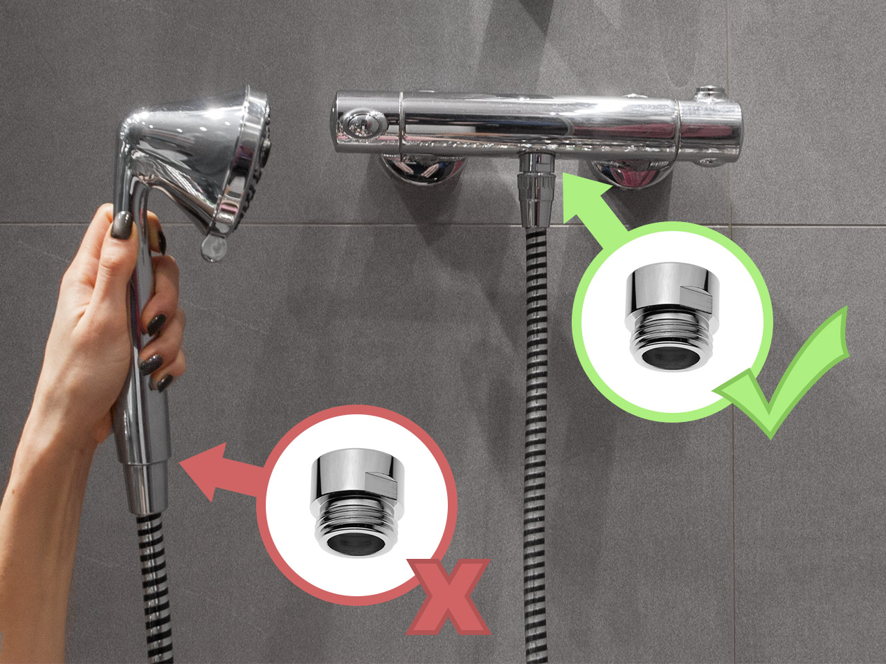 - установка между душевым смесителем и шлангом
