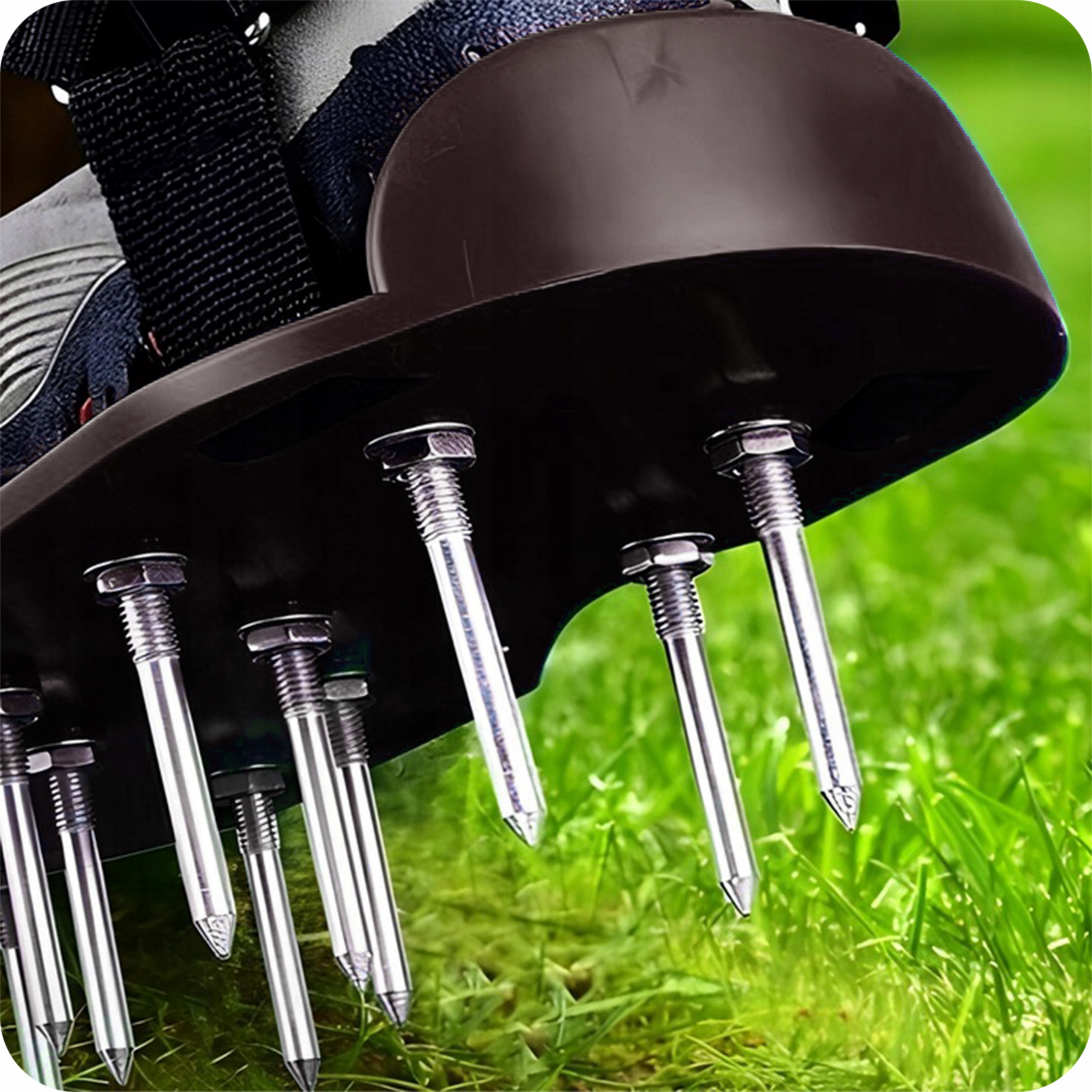 сандаловый аэратор - удобная обувь для аэрации почвы. Это улучшает поглощение воды и удобрений, поддерживая регенерацию травы и увеличивая сопротивление набережной. Пластик