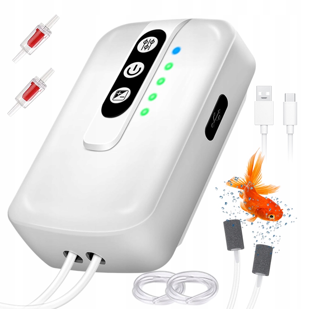 🐟️Воздушный насос с регулируемым объёмом воздуха и двумя режимами работы, идеально подходит для рыбалки на открытом воздухе и аквариумов.