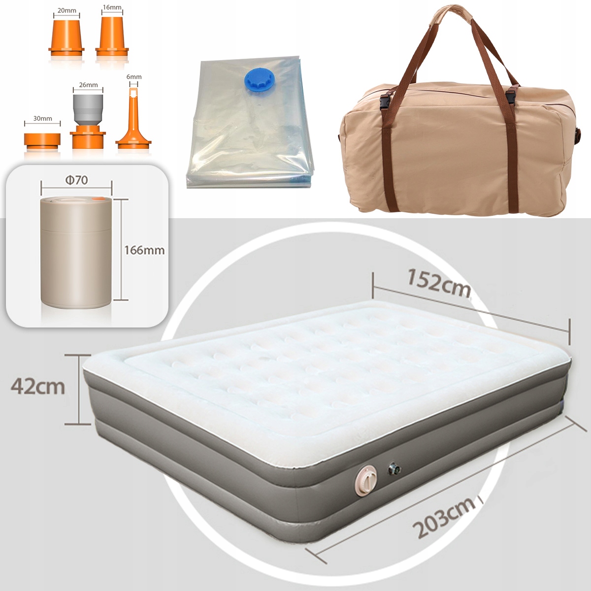 Просто разложите матрас, подключите насос и накачайте его до нужного уровня. После использования матрас можно легко сложить, откачать воздух с помощью насоса и хранить в прилагаемой сумке для транспортировки.