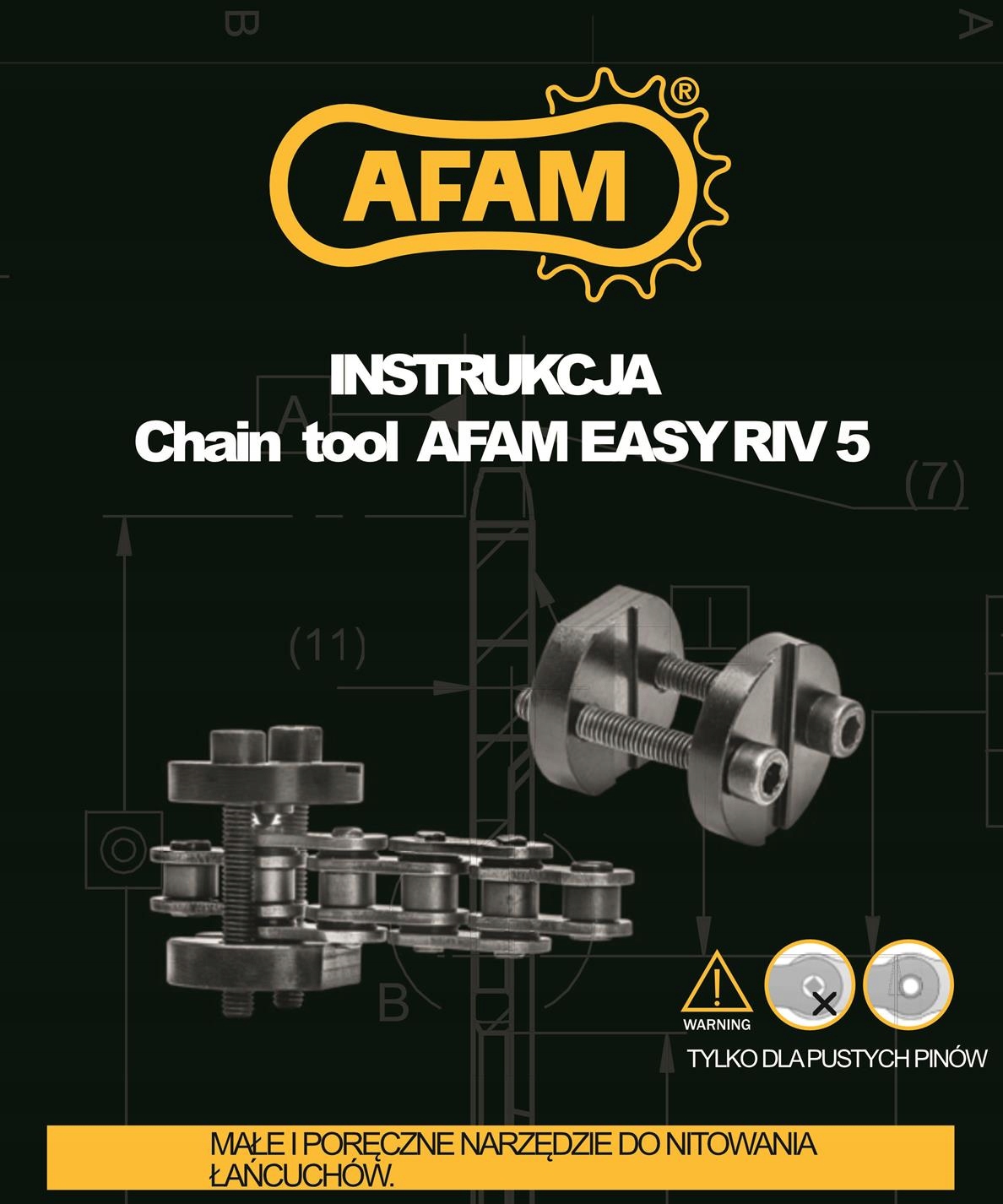В комплект поставки входят инструкция на польском языке о том, как прикрепить цепь с помощью обжимного станка AFAM EASY RIV 5 и ссылка к видео о том, как прикрепить цепь с помощью EASY RIV 5.