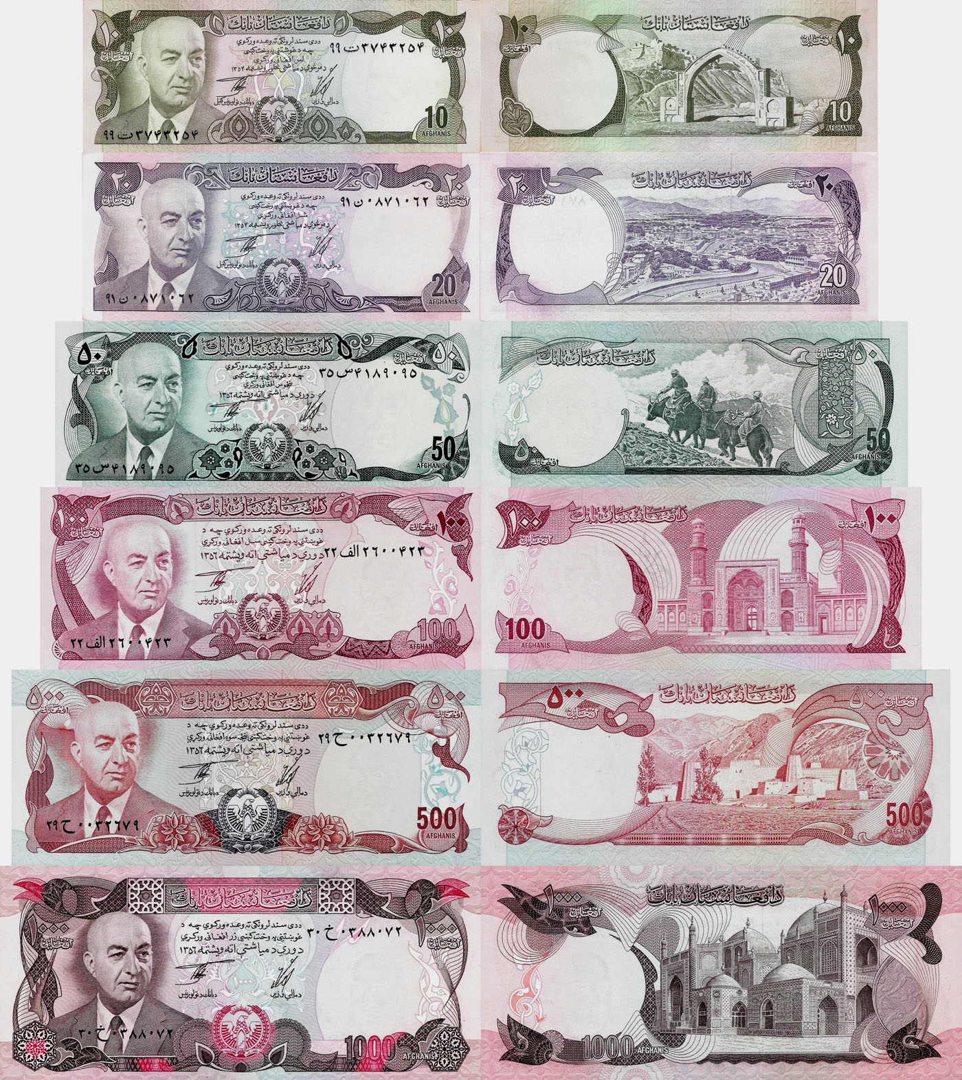 Афганистан 1973-77 Установите 6 шт. 10+20+50+100+500+1000 афганис с. 47-53 Аунк