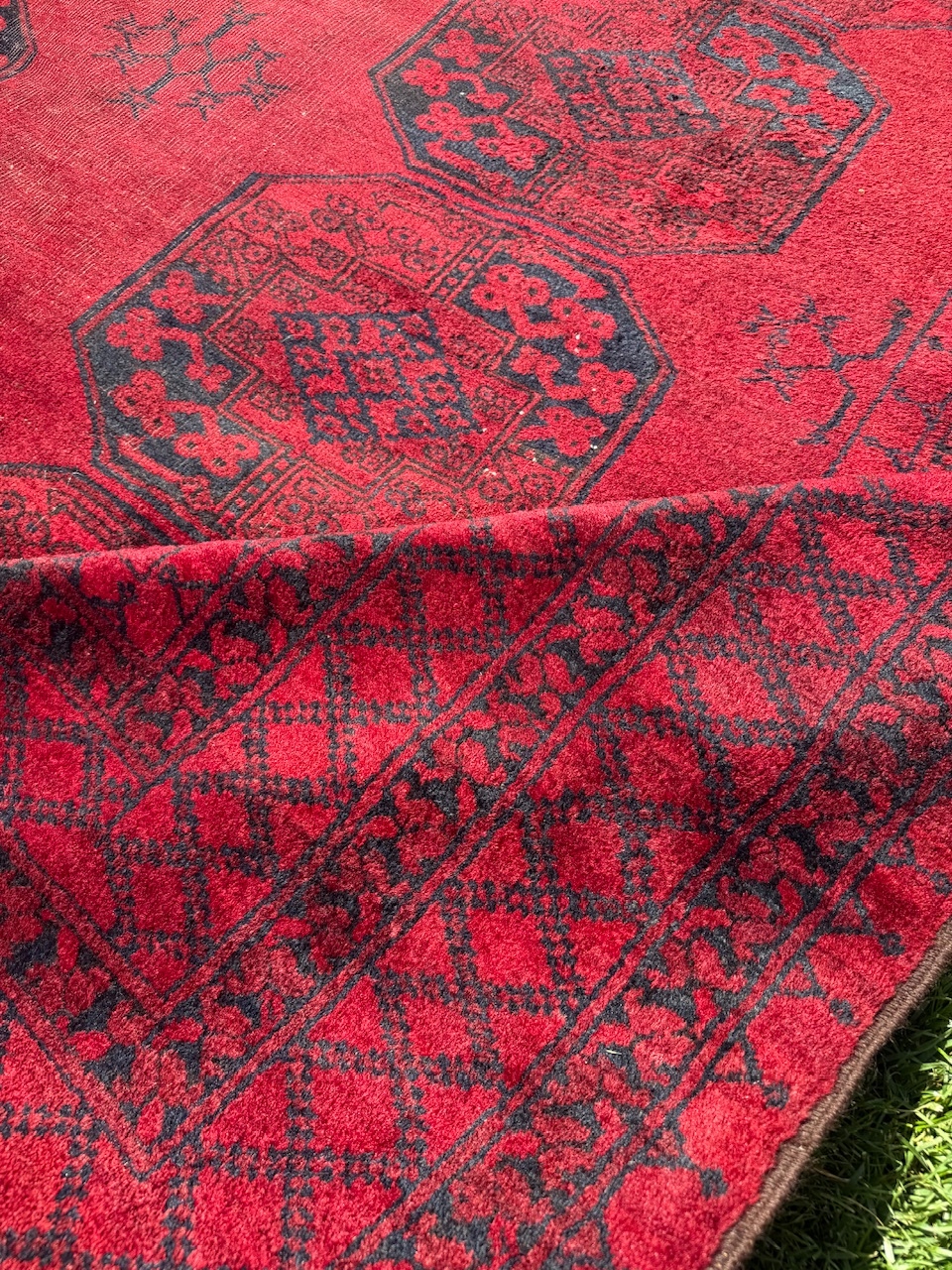 Субъект: Рука -Недостаток афганский ковер. Оригинальный афганский. По запросу есть тег под ковром + бумажным сертификатом. В галерее, перед скидкой, это стоило 3750 евро или около 14 000 человек. уникален из -за его классического рисунка. Это очень высокий коврик.
