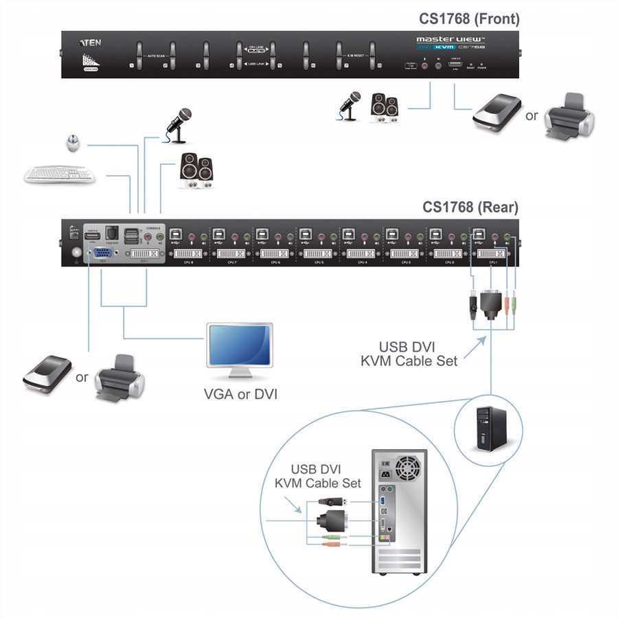 ATEN CS1768 DVI USB-аудио KVM-переключатель 8 портов