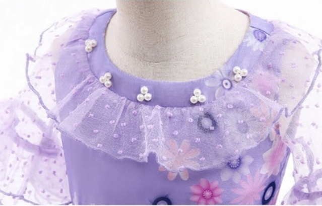 Идеальный костюм для маленьких девочек, особенно для поклонниц сказки «Наш волшебный Энканто». выполнен в фиолетовых тонах. Дети смогут почувствовать себя любимым персонажем, надев костюм сказочной героини. Костюм гарантирует фантастическое развлечение и развивает воображение ребенка.