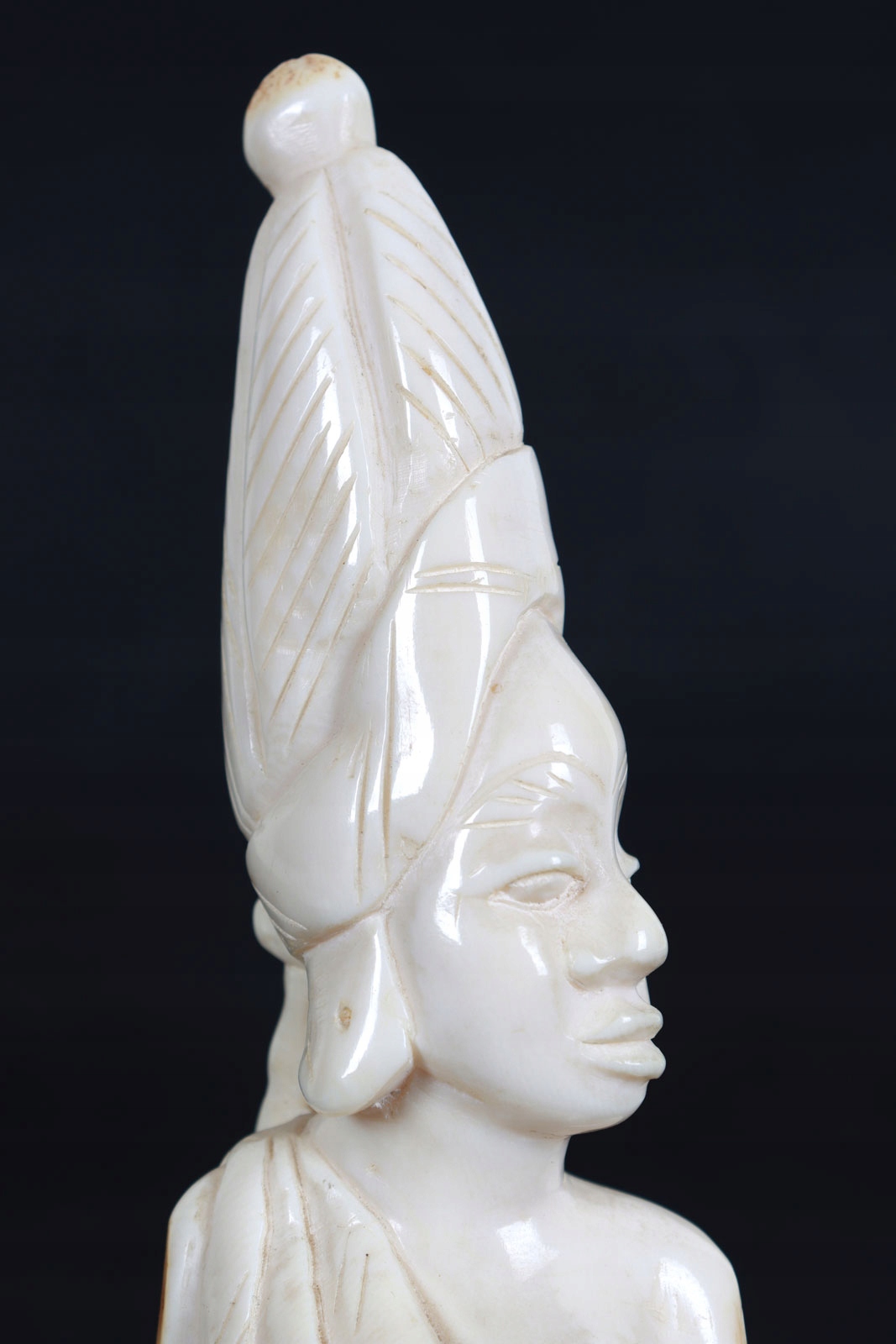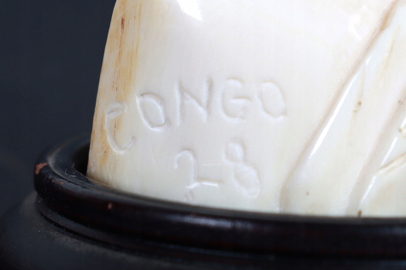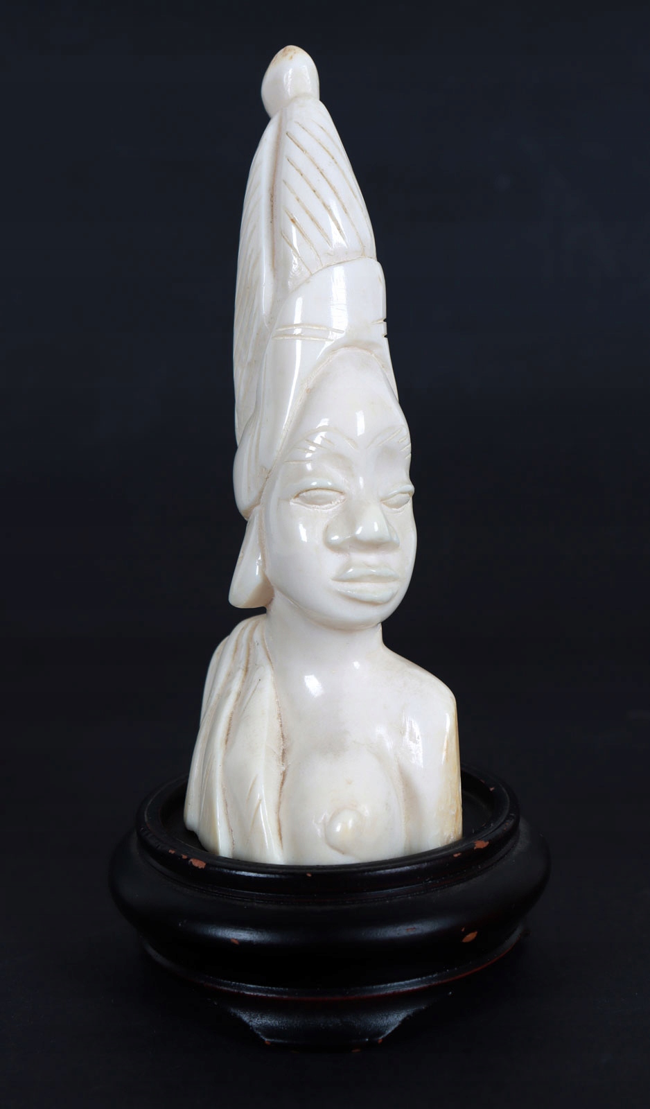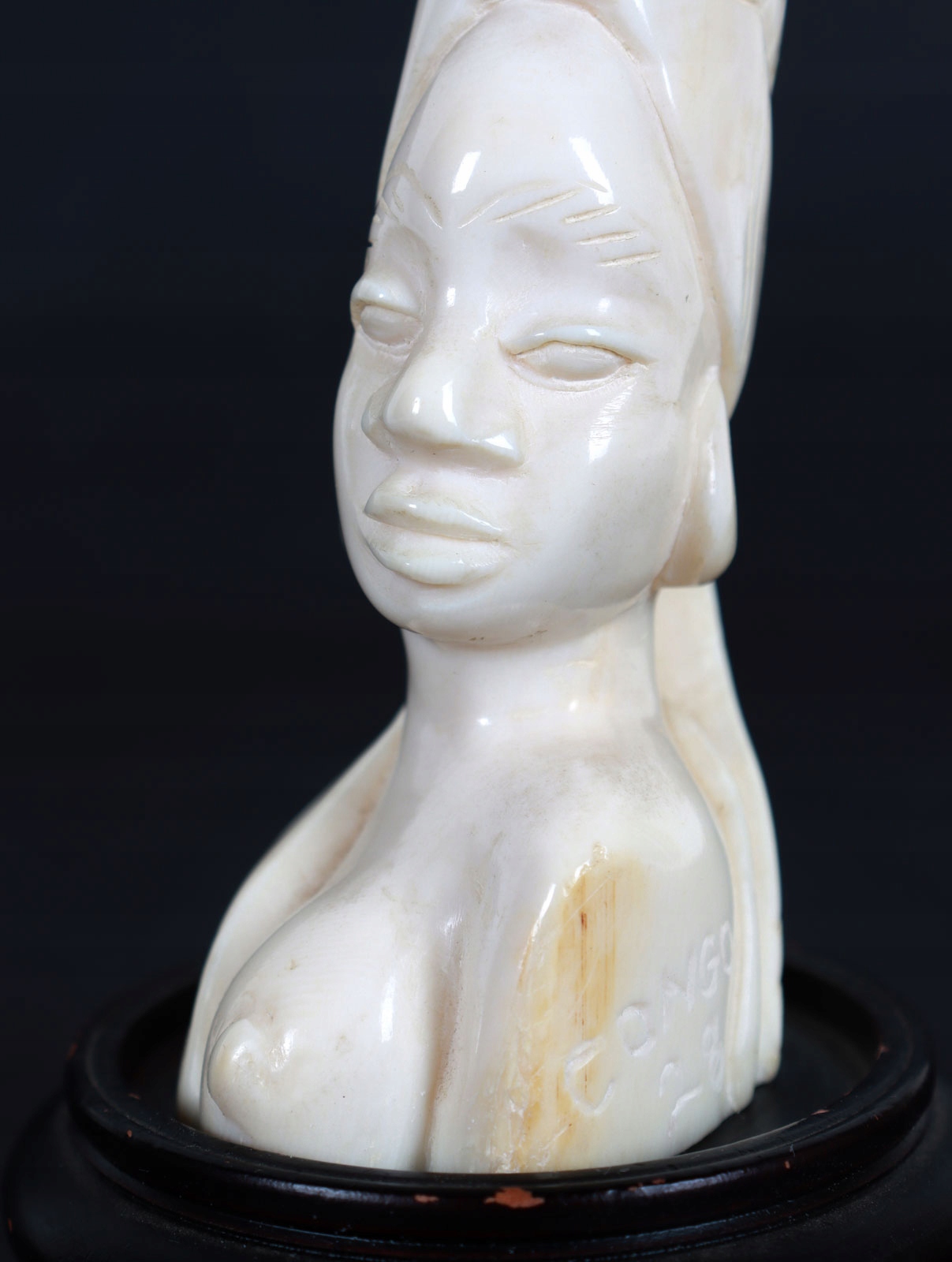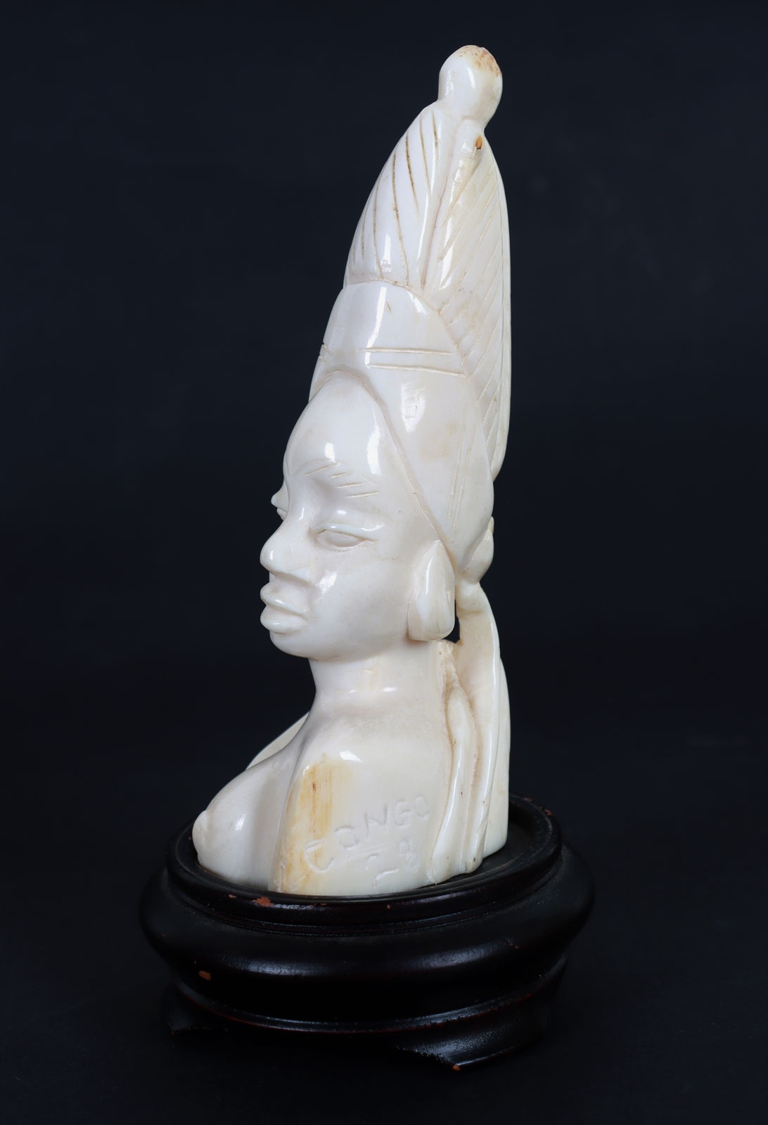Статуэтка из слоновой кости (благородный бивень), изображающая бюст африканской женщины. Великолепное мастерство автора в передаче анатомических деталей. На скульптуре на подставке из экзотического дерева выгравирована надпись Congo 1928.