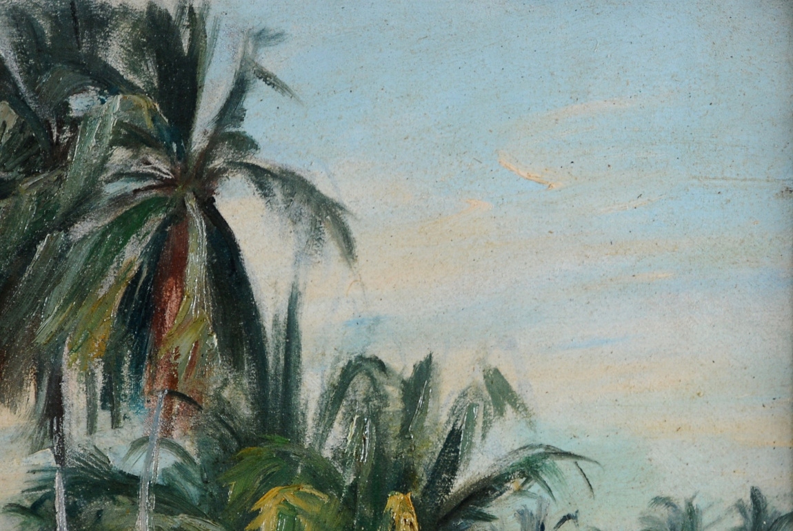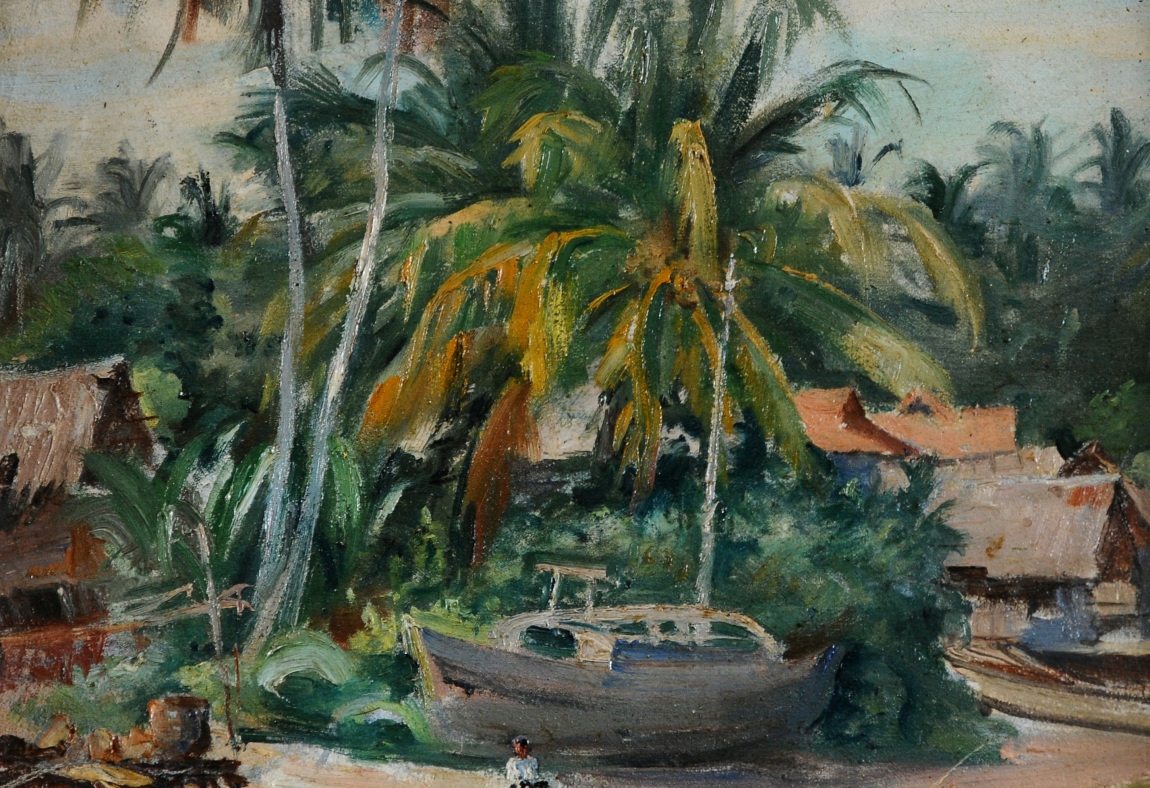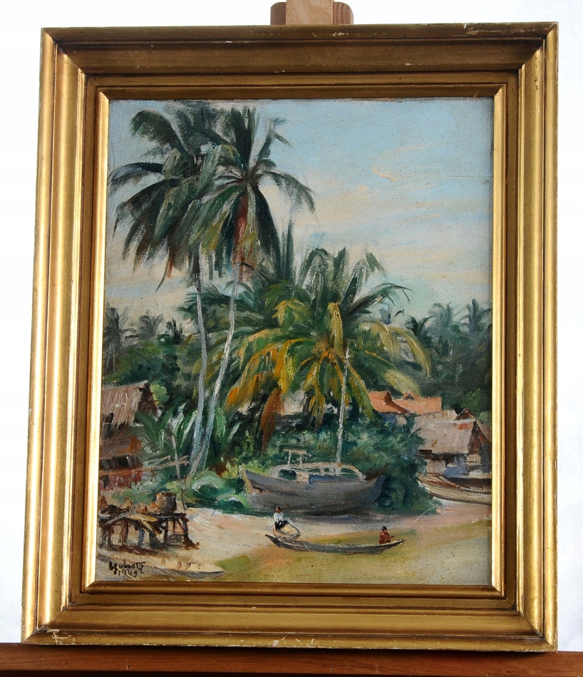 "АФРИКАНСКАЯ РЫБАЦКАЯ ДЕРЕВНЯ" КРАСИВАЯ КАРТИНА МАСЛОМ 1949 ГОДА!!!