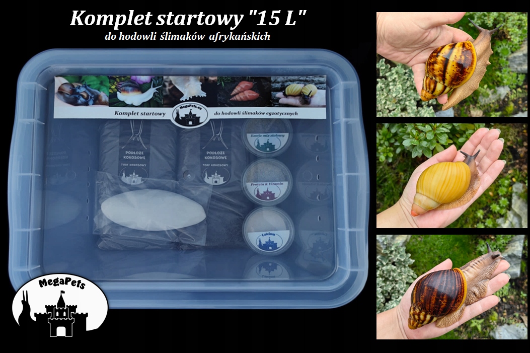 На наших аукционах вы также найдете рекомендуемые аксессуары для селекции улиток: кокосовый субстрат, полезные дополнения к основной диете, контейнеры для размножения с возможностями 10 л, 15 л, 20 л.