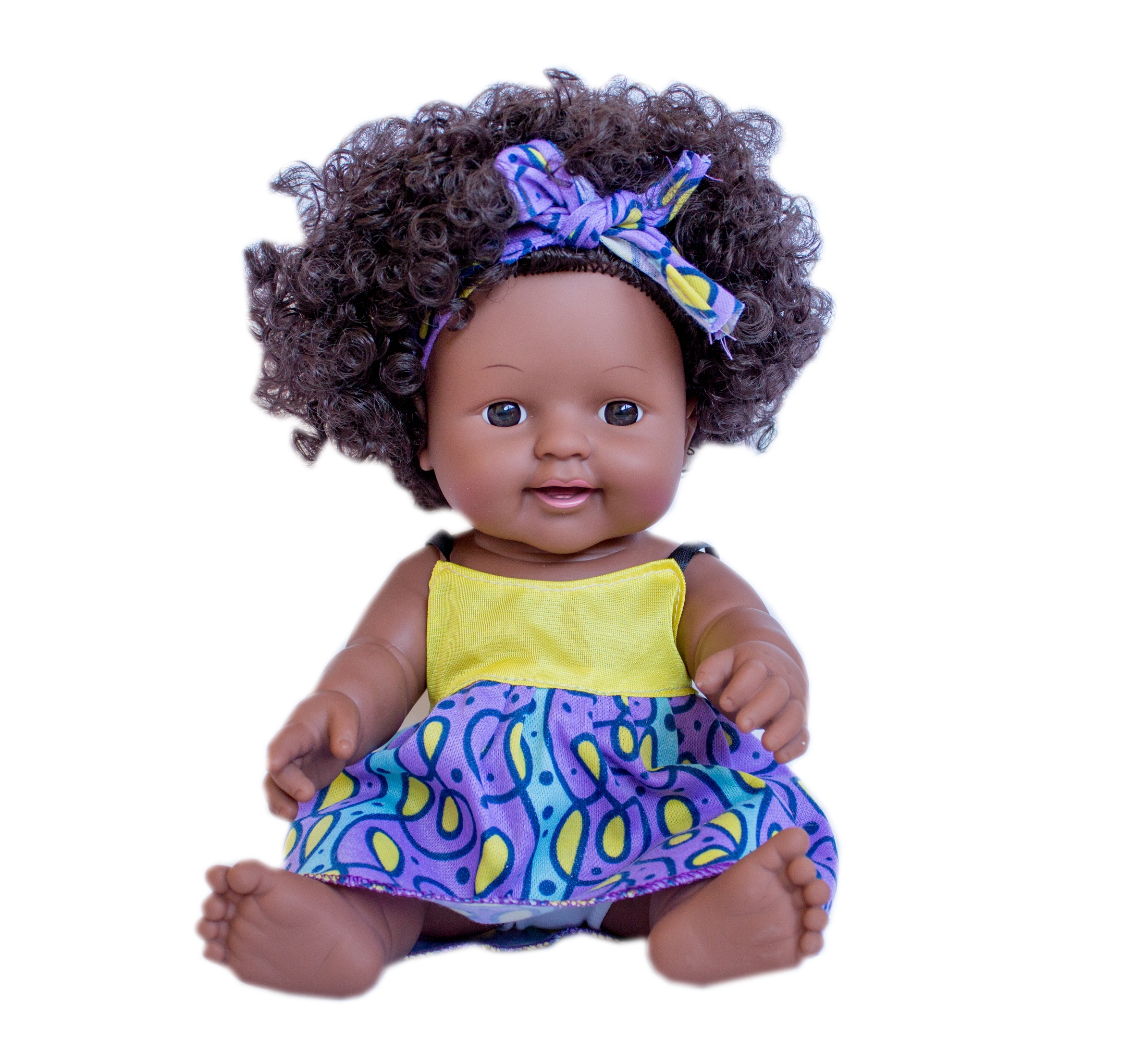 Афроамериканська лялька 30 см, кучеряве волосся малюка