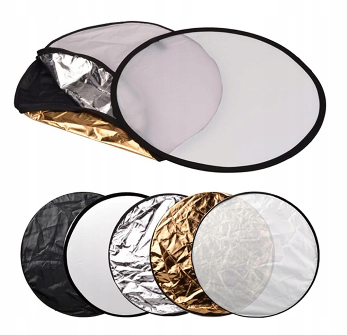 Набор из 5 удобных складных фоторефлекторов с рассеивателем. Они идеально подходят для профессиональной и любительской фотографии. Они позволяют использовать свет как на открытом воздухе, так и в помещении (например, в качестве отражателя) без необходимости использования других аксессуаров. Они обеспечивают превосходное качество фотографий благодаря способности отражать свет и корректировать его цвет! Правильно настроенный, он устраняет тени и выравнивает освещение в кадре.