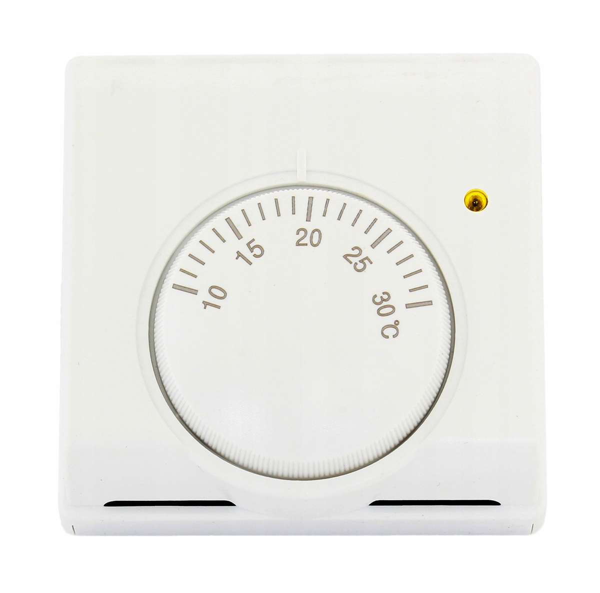 Комнатный термостат, терморегулятор. Оснащен удобной механической ручкой регулировки температуры и сигнальным диодом (режим работы). Легкая установка и простота использования (большая ручка). Он позволяет регулировать температуру от 10 градусов до 30 градусов Цельсия. Термостат позволяет управлять нагревом (включение циркуляционного насоса) или охлаждением (включение вентилятора). Продукт предназначен для использования внутри помещений.