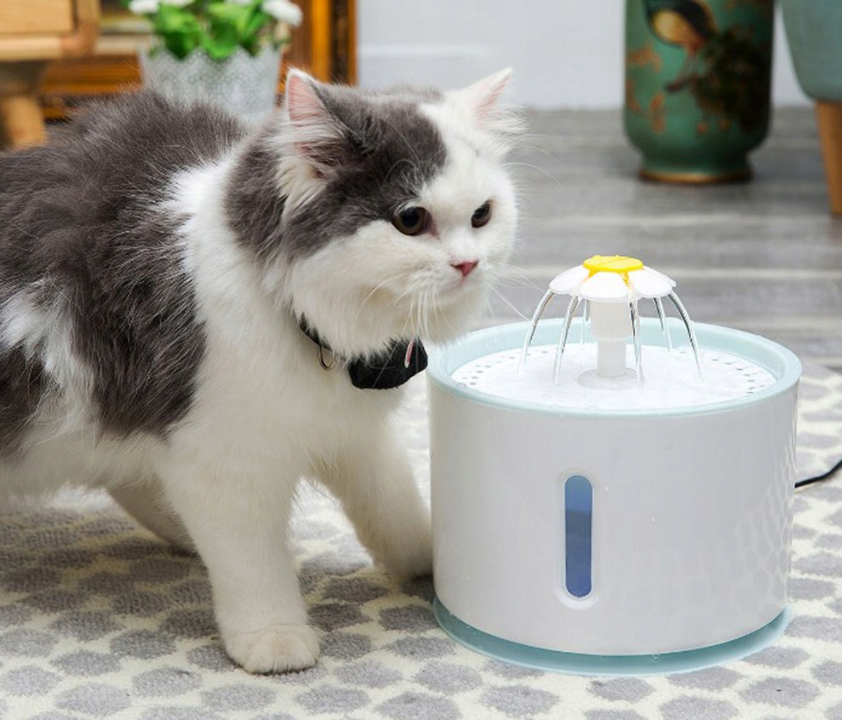 Автоматическая поилка для домашних животных. Привлекательная конструкция в форме фонтана с несколькими насадками. Большой резервуар для воды емкостью до 2,4 литра обеспечивает длительное использование. Система фильтров (со сменным фильтром) обеспечивает нашего питомца свежей и чистой водой. Поилка оснащена тихим и производительным насосом, устройство может успешно работать в ночное время. Безопасность использования повышают функции автоматического отключения и сигнализации низкого уровня воды (с помощью светодиодной подсветки).