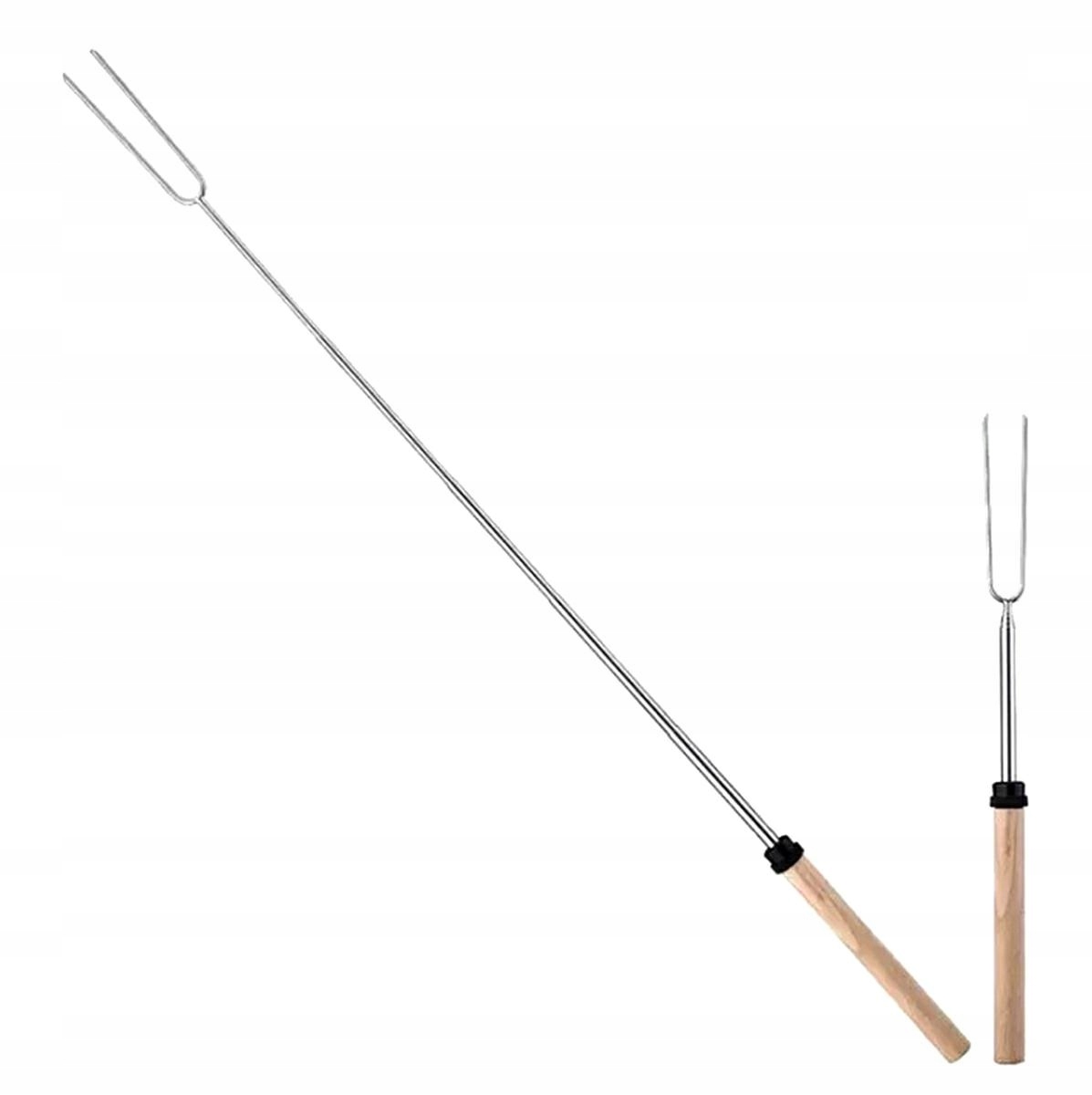 Телескопическая вилка для гриля и костра с длинной ручкой сгиба. Сплошной двойной шар -шар для нержавеющей стали позволяет вам удобно собирать блюда на гриле и удобную выпечку двух колбас одновременно над огнем. Деревянная ручка обеспечивает надежную и безопасную сцепление при использовании вилки. Ожоги. CM