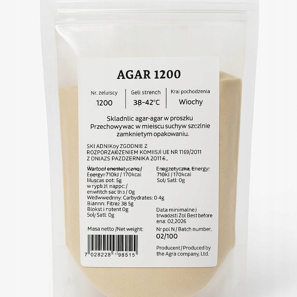 Агар 1200 — натуральный желирующий агент растительного происхождения, полученный из красных морских водорослей. Идеально подходит для приготовления желе, гелей, муссов, кремов, десертов и блюд молекулярной кухни. Характеризуется высокой желирующей способностью и является прекрасной альтернативой желатину животного происхождения.
