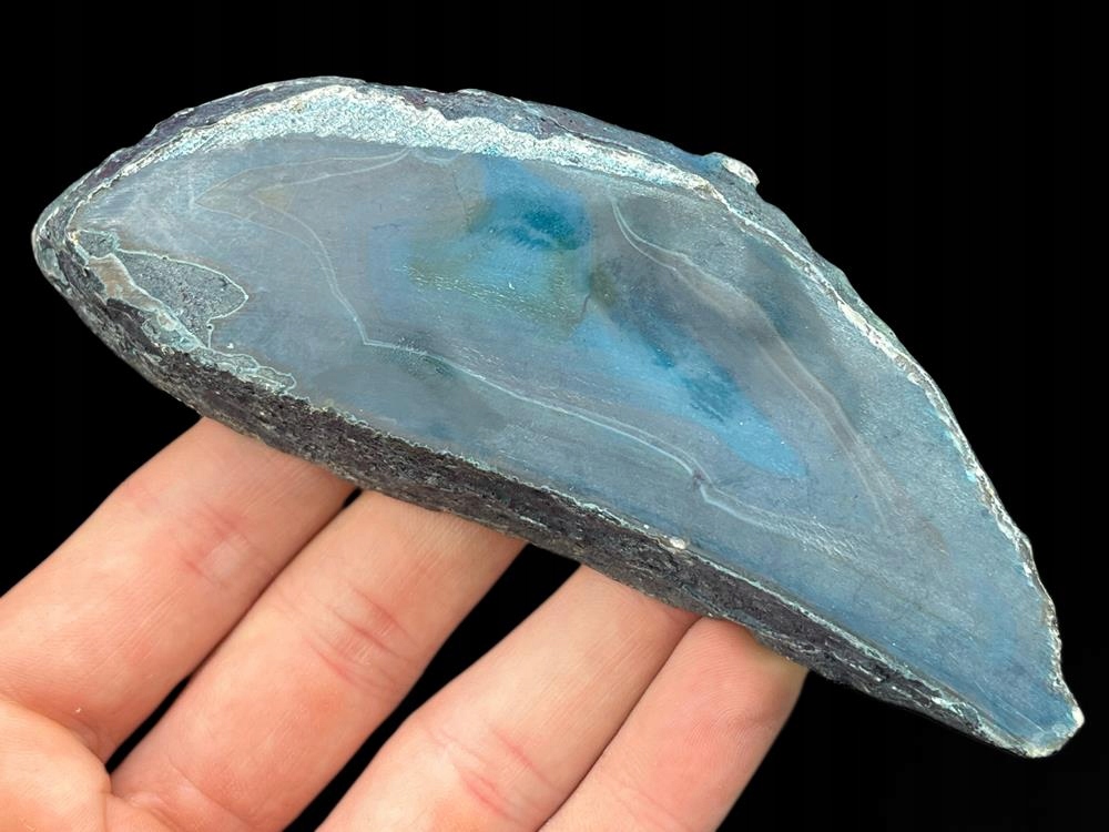 Агат в виде среза, найденный в Бразилии, камень натуральный и окрашенный, ограненный и отполированный с одной стороны. Имеет интересный серо-голубой рисунок. Агат – коллекционный полудрагоценный минерал, считается, что этот минерал помогает нам сохранять внутреннюю гармонию и покой. Его размеры: 12,5см х 5см х 1,9см. Вес: 185 г. Представленные фотографии показывают предлагаемый агат в аутентичном виде, они не подвергались какой-либо обработке или изменению цвета.
