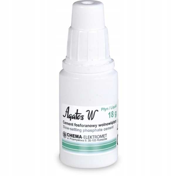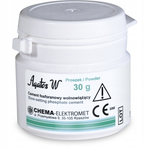 AGATOS W обладает очень хорошими твердеющими свойствами, после схватывания обладает высокой прочностью на сжатие и устойчивостью к эрозионному воздействию воды, слюны и соединений, содержащихся в пищевых продуктах. . Характеризуется более длительным сроком схватывания и низкой усадкой, а также хорошей адгезией и относительной безвредностью для окружающих тканей. Прочность на сжатие затвердевшего цемента составляет мин. 50 МПа.