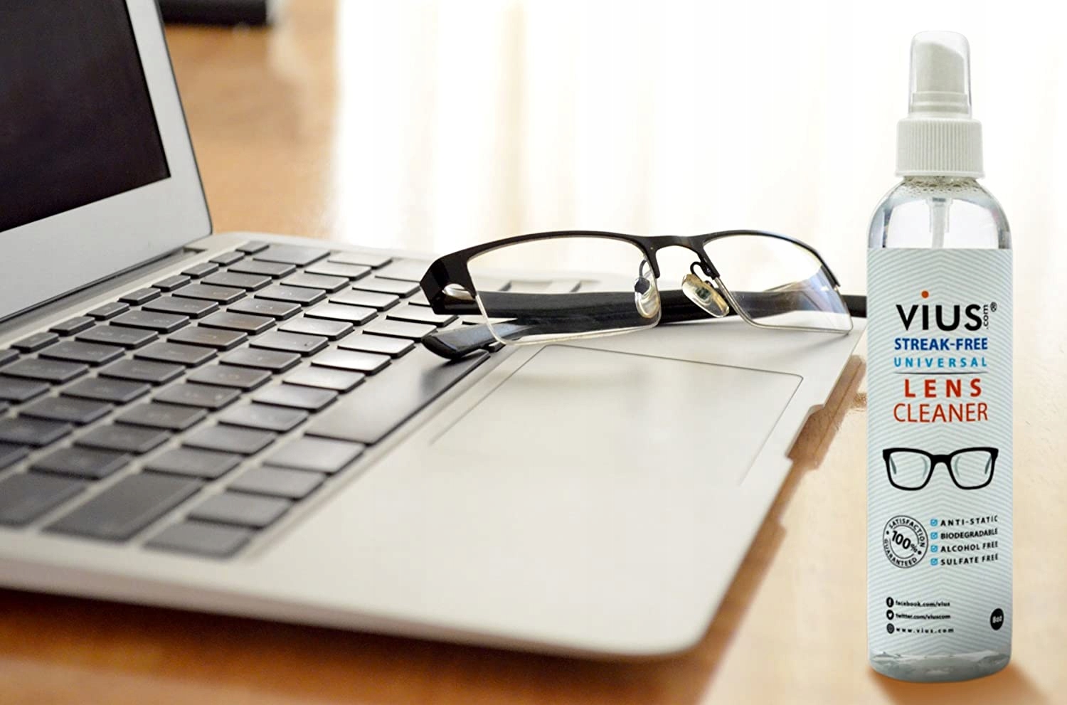 Очиститель линз — vius Premium Lens Cleaner Spray для очков, фотоаппаратов и других линз — бережно очищает отпечатки пальцев, пыль, масло (235 мл).