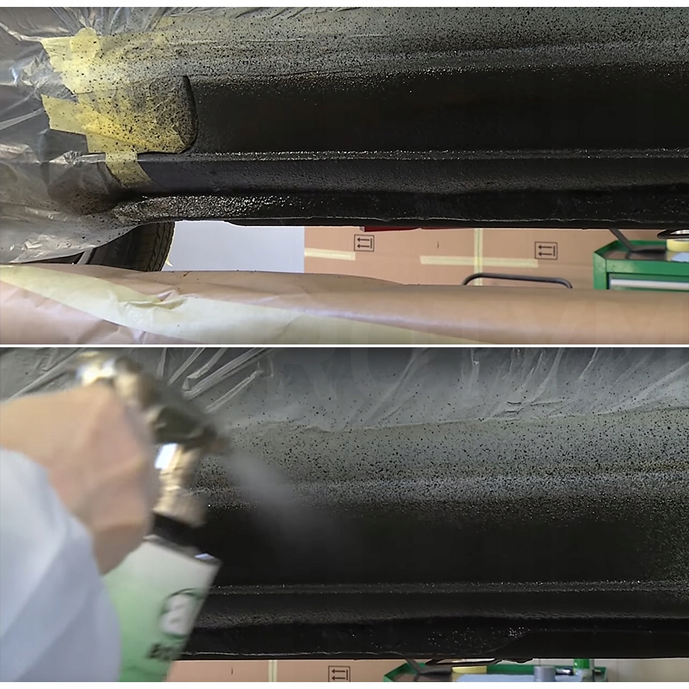Агент по обслуживанию шасси может быть легко применено с помощью воздушных пистолетов . Покройте соседние поверхности бумагой.