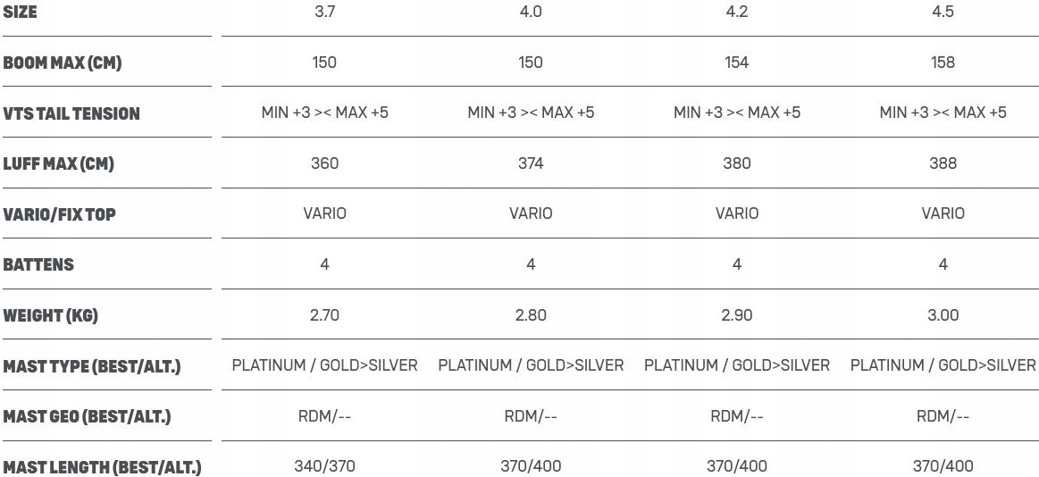 Дальнейшая новизна заключается в повышении производительности, динамики и вождения, , которые получают благодаря новой длине шв на грани атаки (рукав с одним кусочком). Это допускает миллиметры точности и уточнения формы, что приводит к более чувствительной, гармоничной ссылке. Передний поединок теперь немного короче, и натяжение парусной фольги уменьшилось благодаря тому, что парус создает немного более мягкий профиль. Благодаря этому это более стабильно в плавании и очень хорошо вписывается в его руки.